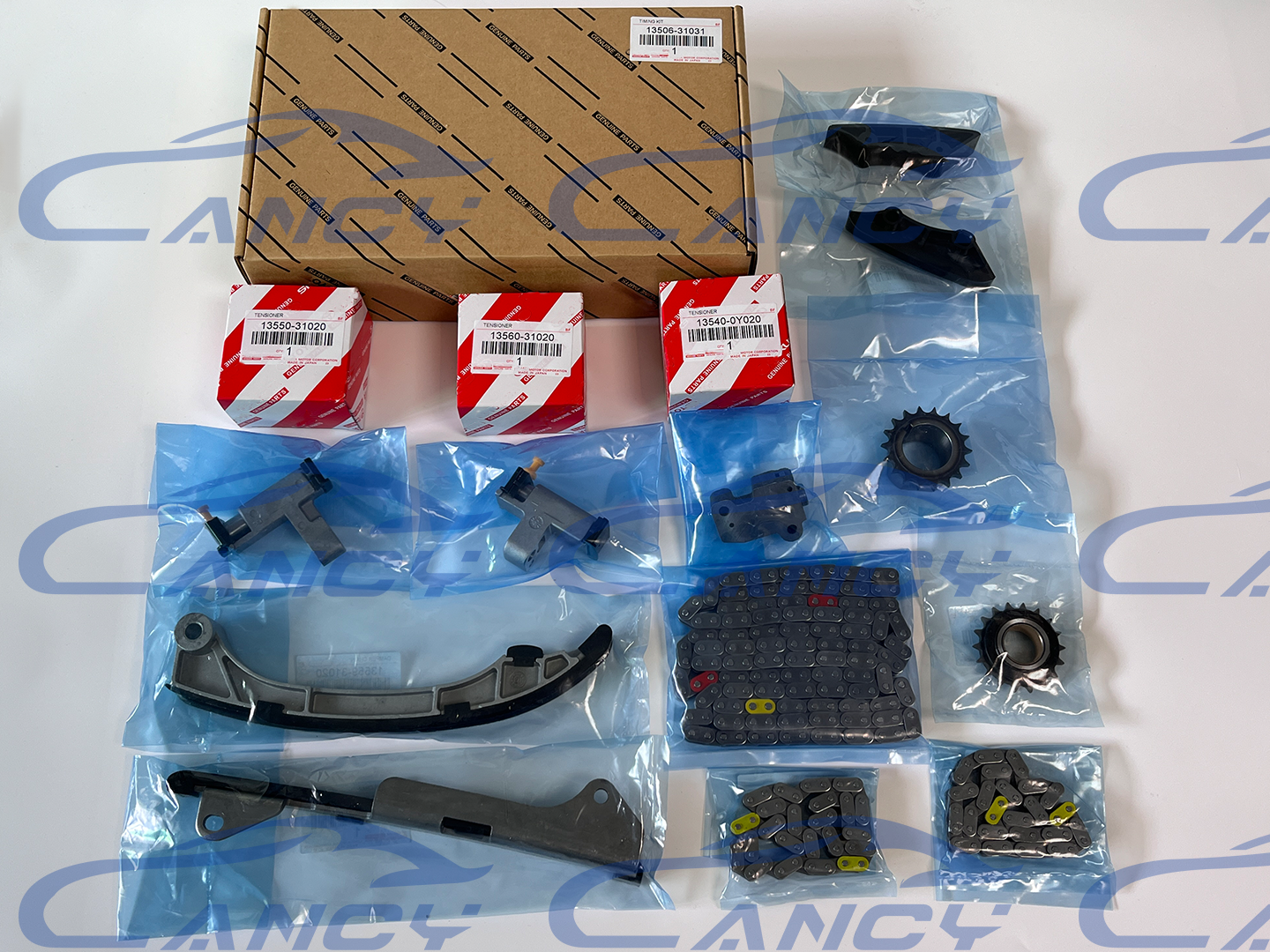 New Genuine Timing Chain Kit for 06-17 Toyota Highlander Venza Lexus RX350 3.5L New Genuine Timing Chain Kit for 06-17 Toyota Highlander Venza Lexus RX350 3.5L Car Application: Toyota: Toyota Highlander 3.5L 2008-2016 Toyota Sienna 3.5L 2007-2016 Toyota RAV4 3.5L 2006-2012 Toyota Avalon 3.5L 2006-2017 Toyota Camry 3.5L 2007-2017 Toyota Venza 3.5L 2009-2016 Lexus: Lexus ES350 3.5L 2007-2017 Lexus ES300h 3.5L 2013-2017 Lexus RX350 3.5L 2007-2015 Lexus RX450h 3.5L 2010-2015 This Item Includes: 1pcs Primary Timing Chain (170L) #13506-31031 2pcs Secondary Timing Chains (48L) #13507-31020 1pcs Crank Sprocket (19T) #13521-31041 1pcs Idler Sprocket (18T) #13530-31021 1pcs Primary Tensioner #13540-0Y020 1pcs Upper Right Tensioner #13560-31021 1pcs Upper Left Tensioner #13550-31021 1pcs Lower Tensioner Guide Rail #13559-31020 1pcs Lower Fixed Guide Rail #13561-31021 2pcs Upper Guide Rails #13562-31020 Purchase Notes: Dear customers, before placing an order, please check the item information carefully to confirm that it is suitable for your car. If you are not sure, please provide us with the Vehicle Identification Number/VIN number and picture of the original part . Thank you!!