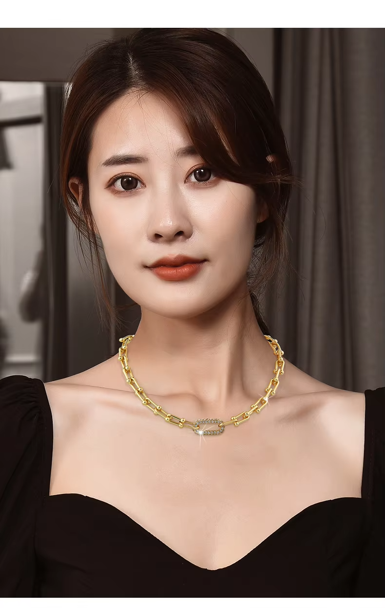 Elevate your accessory game with this Geometric Clavicle Necklace, a piece that merges the modern silhouette of a rectangle pendant with the natural elegance of bamboo chain. The charm's delicate crystal embellishment catches the light, adding a subtle sparkle to your ensemble. With a comfortable length of 45 cm, this necklace sits perfectly around the neck, offering a chic, choker-style statement. Crafted from durable zinc and stainless steel, this necklace is a testament to both style and longevity. The crystal main stone brings a touch of sophistication, while the customisable fit ensures a personalised experience. Whether you're dressing up for a night out or adding a finishing touch to your daily wear, this necklace is a versatile addition to any jewellery collection.