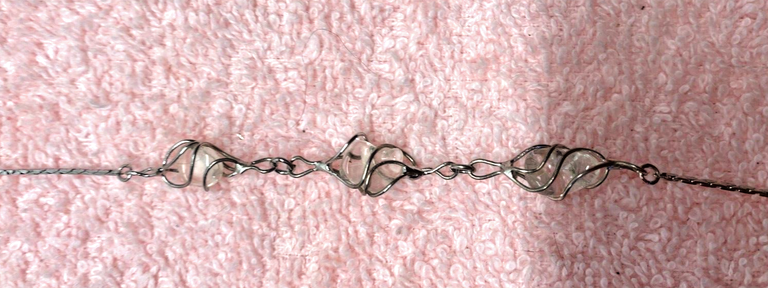 Charm Type:BeadMain Stone Color:clearJewelry Department:FineMain Stone Treatment:UnknownColored Diamond Intensity:N/aSecondary Stone:GlassBase Metal:SilverBrand:UnbrandedDiamond Clarity Grade:N/aSetting Style:N/aChain Type:WireMain Stone:GlassCountry/Region of Manufacture:UnknownCut Grade:N/aTheme:BeautyMaterial:GlassShape:TriangleVintage:YesColor:Silver And AmberMain Stone Shape:OvalType:BraceletCertification:N/aDepartment:WomenMain Stone Creation:UnknownCountry of Origin:UnknownStyle:Chain, BeadedDiamond Color Grade:N/aTotal Carat Weight:N/aItem Length:7 inMetal:SilverClosure:Lobster