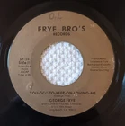 George Frye, You Are The One/You Got To Keep On Loving Me, 7"-45rpm, Frye Bro's Records SF-15. See pictures for condition. We will be listing multiple 45 rpm records from an estate buy. Some sealed and some promos mixed in. Low starting bid, no reserve, low buy it now. All will play through but may have some scuffing and/or background noise unless otherwise noted earlier in description. If you need more specifics on a record, please ask. If you purchase records and feel they were described improperly, or received with damage, let us know immediately and we will resolve to your satisfaction. Sometimes things get missed when dealing with large quantities of records. I try to add enough information and photos so that you know what you're bidding on but if you need more or something specific please ask before bidding. We will respond. If you have questions on items or shipping please ask. Thanks and good luck. SHIPPING DETAILS: 33 rpm LP's, Double LP's, and 45's-Shipping will be combined for 1-4 records, add $1 for each additional record. 78rpm records-Shipping will be combined for 1-3 records. Only 3) 78's can be shipped per mailer. Extra padding is required due to their fragility. For more than 3, mesaage for quote. Boxed Sets-Message for shipping quotes on multiple boxed set purchases. RETURNS: If you are not happy with your purchases for any reason, just contact me and we can get things resolved to customer satisfaction. Please try to refrain from leaving negative feedback without giving me a chance to resolve any issues.