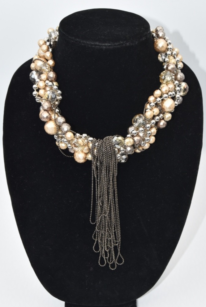 Georgio Armani multi-layer faux Pearl & Rhinestones Choker Statement Necklaces Exquisite Craftsmanship: Multi-Layer Choker Statement Necklace Crafted with meticulous attention to detail, this choker necklace exudes sophistication. The combination of bronze chains, silver beads, faux pearl embellishments, and sparkling rhinestones creates a dazzling display that elevates any outfit. * Gently worn - In excellent condition free from damage or repair * 19" End to End Please do keep in mind that any vintage or antique merchandise may have some degree of visible patina due its age. This is considered quite normal and can be part of the overall appeal and charm. Therefore, I try not to disturb the natural patina and leave the cleaning to its new owner. Thank you, for supporting my small business! Comes from SMOKE free PET free home * HASSEL FREE RETURNS * Doesn't fit or flatter? No worries! We accept returns and offer full refunds within 3 days of being received. Buyer pays return shipping. Please ensure that the item is in its original condition and begin the Return Process on eBay. We'll issue a full refund upon receipt after verifying condition. S hipping frees are non-refundable. Note: MDT does NOT charge restocking or shipping fees for returns, If you have received the wrong item or it doesn't match what was shown on our listing. *SHIPPING* I package carefully, I use extra packaging materials in order to insure the safe arrival of your purchase. Items will be shipped in the United States Only, with insurance included for extra peace of mind. All shipments out side the US, Please contact seller for rates. * INTERNATIONAL SHIPPING * Please note the shipping cost in my listing is only for USA. All International customer, please contact me before bidding to get actual shipping cost for your country. Import duties, taxes and charges are not included in the item price or in shipping charges. These charges are the buyer’s responsibility.