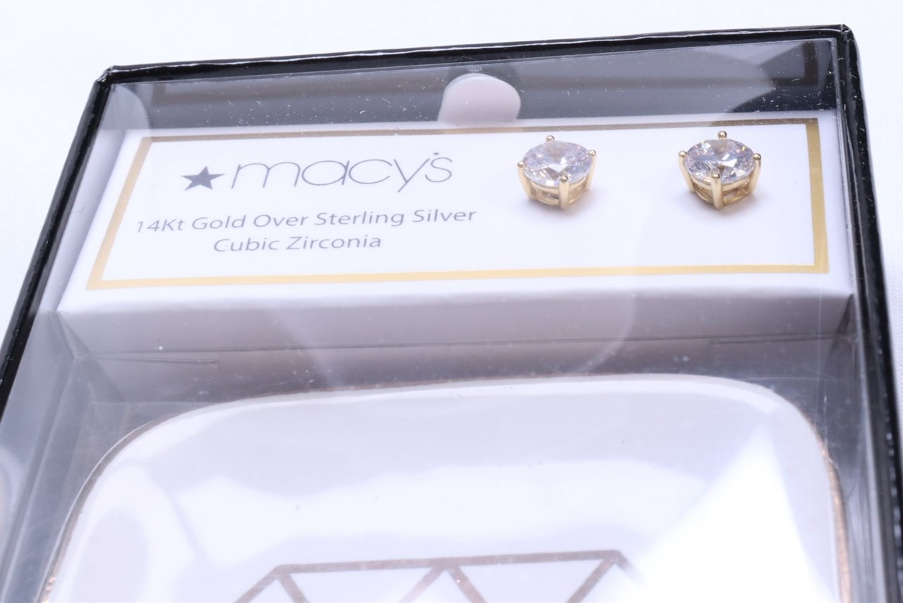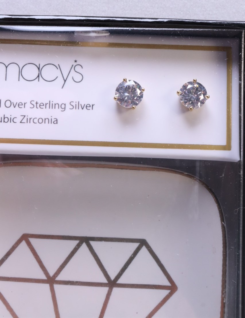 You are bidding on a Giani Bernini Gold over 925 Sterling 6mm Cubic Zirconia Stud Earrings + Dish $55. The item is new in box. The earrings are about 6mm in size. The dish tray is about 2.5" in size. It retails for $55.