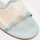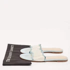 Our eBay Store About Us Contact Us Add to Favorite Sellers Gianvito Rossi Blue PVC and Suede Wavy Flat Sandals Size 40 Sculptural and playful, these Gianvito Rossi slides take a classic slip-on style and give it an artistic twist with wavy-cut green leather. Product Details Brand Gianvito Rossi Color Blue Includes The Luxury Closet Packaging Outsole Length 26.5 cm Outsole Width 10 cm Size 40 Certified by The Luxury Closet This item has gone through a detailed authentication process overseen by our experts. We offer a lifetime guarantee of authenticity on all our items. How We Check The in-house team of experts at The Luxury Closet is highly trained to verify the authenticity and the condition of the luxury products. They ensure that only 100% authentic items are put on sale.The evaluation process is unique with its own mix of assessment criteria and differs according to the category. Each item is evaluated based on the following combination of hallmarks, hardware, stitching, symmetry, material, craftsmanship, stamping, codes, hologram stickers, and packaging. Our authenticators also check if the items have been modified or amended (e.g., aftermarket diamonds, replaced batteries, repaired bags, etc.) International Buyers Import duties, taxes and charges are not included in the item price. These charges are the buyers responsibility. Please check with your country’s customs office to determine what these additional cost will be prior to buying.
