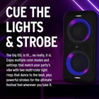 POWERFUL SOUND - Klipsch Gig XXL is a small-but-mighty portable speaker that packs bigger and better sound than any of its rivals. With two 6.5" woofers & two 2" tweeters, you'll experience legendary dynamic range with crisp highs and deep lows. CUE THE LIGHT SHOW & STROBE - Enjoy multiple color modes and settings to match your party's vibe. Turn on powerful strobes and multi-color light rings that dance to the beat. Activate Bass Boost to drop the bass & elevate your party. KARAOKE MIC & CABLE INPUT - The Gig XXL includes a karaoke mic and input, plus a standard 1/4 instrument cable input. Simply plug in your guitar, keyboard, drum machine (or anything else with a matching output). SEAMLESS BLUETOOTH PAIRING - Wirelessly pair your smartphone, tablet, or computer & press play on the Gig XXL. Plus, by syncing two Gig XXLs with dual built-in Bluetooth pairing, you're getting true two-channel stereo sound. 8-HOUR PLAYTIME - One full charge equals eight hours of your favorite beats. The Gig XXL is lit…no really, it is. Enjoy multiple color modes and settings that match your party’s vibe with two multi-color light rings that dance to the beat plus powerful strobes for the ultimate festival feel wherever you take it.