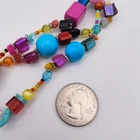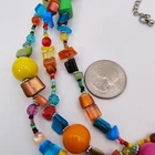 The Gimme Gummy Color Pop Statement Necklace is a vibrant and eye-catching accessory perfect for various occasions such as Mother's Day, graduations, parties, anniversaries, casual outings, and business events. This multi-strand beaded necklace features a colorful mix of seed beads, glass, plastic, and metal materials in a playful "Gimme Gummy" theme. With a lobster closure and adjustable length ranging from 18" to 21", this statement necklace adds a pop of color and style to any outfit while making a bold fashion statement. Made in China, this unique piece is sure to stand out and make a statement wherever it is worn. Good condition. This is used, so there is some slight wear, marks, scuffs and tarnish in spots (see photos), but nothing that is too bad or deters from this bright and fun piece. You can see some wear and scuffs on some of the beads where you can see the top coating has chipped away (see photos), but it's not noticeable unless you are inspecting very closely. There is tarnish on the clasp (see photos). The chain feels strong. The clasp is functioning and secure. This will come in a gift box. Please view all photos for full condition. https://www.ebay.com/str/nikidoodlestreasurecorner For other gift ideas or home items, visit my other ebay store, right around the corner. https://www.ebay.com/str/nikidoodlescorner N107
