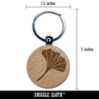 Ginkgo Leaf Engraved Wood Round Keychain Tag Charm