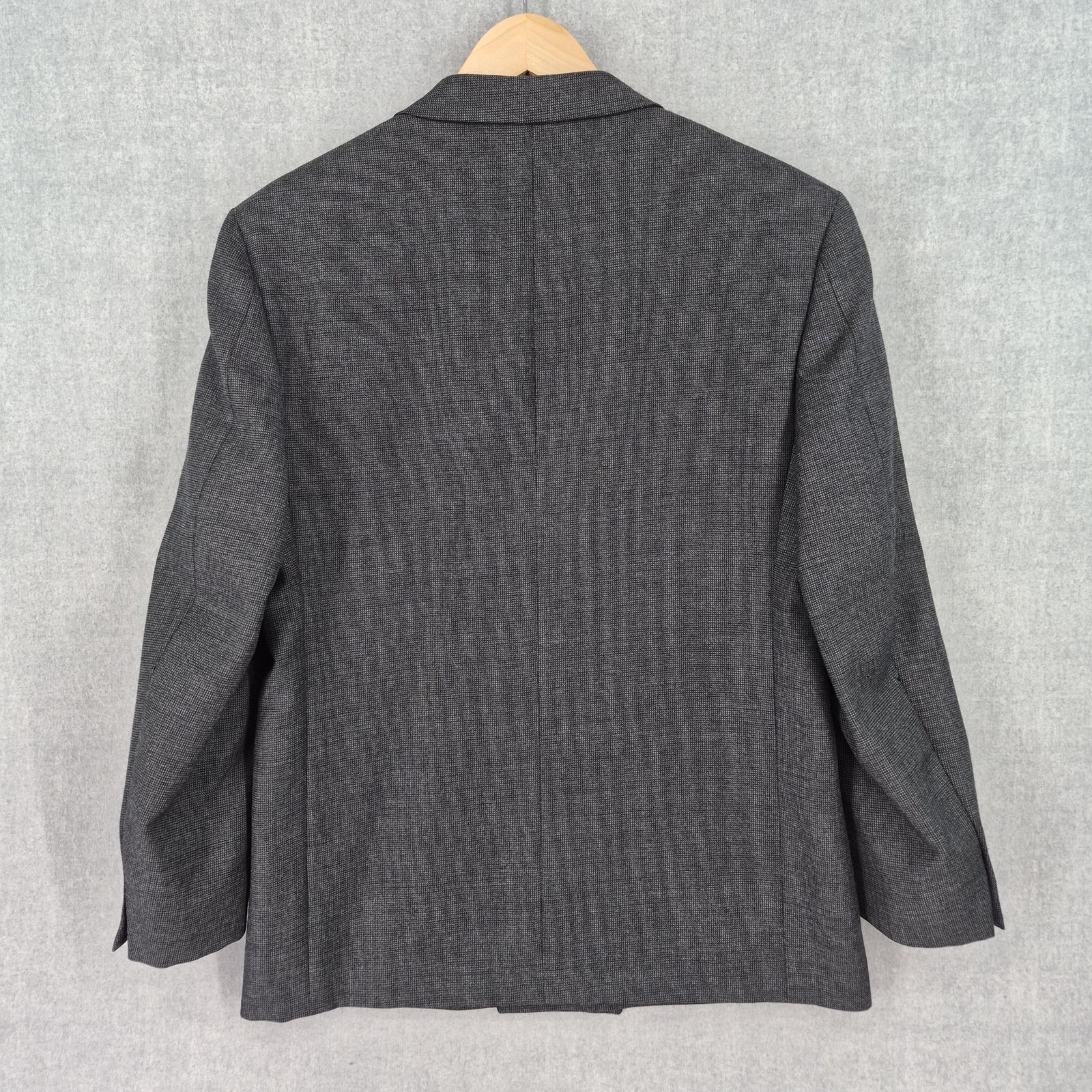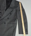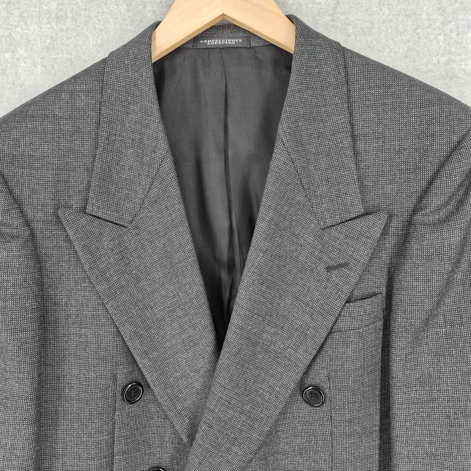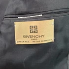 Welcome to Aspen Crossing, your place to shop for men’s modern rustic western wear and refined leisure styles reflecting the rugged beauty of our American West Brand: Givenchy Paris (by Confecciones Europeas) Item: Mens double breasted blazer / suit jacket with structured padded shoulders and peak lapels. Color: Gray with subtle textured weave pattern. Size on tag: 38C, Drop 5 (mens tailored fit). Shell material: 100% pure new wool (Woolmark, noted as 100% lana, casimir de Uruguay). Lining: 100% acetate, lining fabric imported from U.S.A. Country of manufacture: Made in Mexico (hecho en Mexico). Design details: Six-button double breasted front, three-button cuffs, jetted front pockets, interior pockets including one with Givenchy logo patch, full lining. Style/Model information from inner tag: Modelo: Cruzado; additional code C1541A-04-S-0194-11 (printed beneath barcode). Barcode/UPC (numbers under barcode on inner tag): 01541A04S019411 (partially worn but included as visible). Care notes: Dry clean recommended; lining and material tags specify professional cleaning (lavese en seco). Special notes: Classic formal business style blazer suitable for office, events, or dress occasions, always elegant with black turtleneck. It is best to compare the measurements in the photos with a garment that fits you comfortably. Please note: While every effort has been made to reproduce actual colors in photos, variations may occur on your screen.