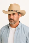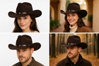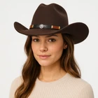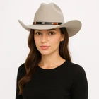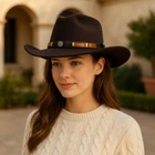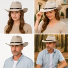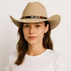Gladwin Bond Wool Cowboy Hat – Western Cattleman Fedora, Wide Brim Sun Hat Unisex Add timeless Western style to your wardrobe with the Gladwin Bond Western Cattleman Cowboy Hat . Expertly crafted from 100% premium wool felt , this unisex cowboy hat showcases a vintage-inspired Cattleman crown , a wide stiff brim for sun protection, and a genuine leather band with subtle diamond stud accents. Designed for both fashion and function, it’s the perfect hat for outdoor events, ranch life, travel, or festivals. 🔹 Features & Benefits: Classic Cattleman Style – Vintage western cowboy hat with a traditional American silhouette Wide Brim Sun Protection – Shields you from harmful UV rays, great for outdoor use Premium Wool Felt – Durable, breathable, and soft for all-day comfort Handmade Finish – Structured, high-quality craftsmanship for long-lasting wear Comfort Cotton Sweatband – Absorbs moisture and keeps you cool and dry Structured Dimensions – Crown Height: 11 cm | Brim Width: 9 cm Color Options – Off White, Sand, Tan, Brown, Black Size Options : Small: 55 cm Medium: 57 cm Large: 59 cm X-Large: 61 cm 🌞 Ideal For: Summer Hats & Sun Hats for Men and Women Wide Brimmed Travel Hats Beach Hats for Men Western Events, Country Weddings, Festivals & Rodeos Casual Outdoor Use – Hiking, Camping, Ranch Work