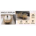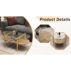 Round Coffee Table Tempered Glass Top Gold Finish With Lower Shelf