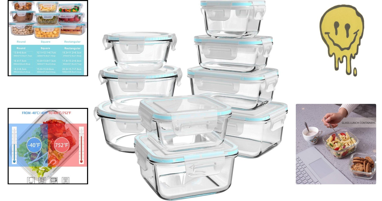 Glass Food Storage Containers with Lids 18 Piece Set Leak Proof Airtight ‹ › ‹ › ‹ › ‹ › ‹ › ‹ › ‹ › ‹ › ‹ › Experience the ultimate in food storage with our 18-piece glass container set, designed for convenience, durability, and safety. This set includes 9 high-quality glass containers and 9 matching locking lids, offering versatile sizes such as rectangle (L 35.5oz, M 21.6oz, S 12.5oz), square (L 27oz, M 17.6oz, S 10.8oz), and round (L 32oz, M 22oz, S 13.5oz). The innovative nesting design allows smaller containers to fit inside larger ones, saving you valuable space in your fridge or cabinets. The lids are easy to close with just five fingers, thanks to their high compatibility with the borosilicate glass, ensuring an airtight seal that keeps your food fresh. Made from durable, BPA-free, high-borosilicate glass, these containers are safe for oven (-40°C to 400°C), microwave, freezer, and dishwasher. Please remove the lids before heating. The lids are also dishwasher safe but should be washed by hand to prevent deformation of the silicone seals over time. Whether you're preparing meals ahead, storing leftovers, or transporting food, these leak-proof, non-porous containers are your reliable kitchen companions. Plus, with our , your satisfaction is assured. Upgrade your food storage game today for a smarter, cleaner, and more organized kitchen experience. Shipping Free & Fast Shipping - We offer free shipping to most of the USA with a normal delivery time of 3-7 days. However, due to the current situation, additional delivery time (up to 3 weeks) may be required for some items. Alternative Carriers - We may use alternative carriers (e.g. USPS, FedEx, UPS, etc.) to ensure your package arrives safely and on time. Due to the use of multiple carriers, we are unable to provide a tracking number automatically. Handling Time - Orders are processed and shipped within 1-2 business days of receiving cleared payment. Shipping Restrictions - Shipping to Alaska, Hawaii, Puerto Rico, Guam, and other US territories may incur shipping charges or delivery restrictions. Please contact us before ordering, or your order can be refunded/cancelled. State Restrictions - There may be restrictions based on your state of purchase. For example, certain items may not be shipped to California due to state regulations. Contact for Tracking Updates - If you require tracking updates or have any concerns about the delivery of your order, please feel free to contact us, and we will be happy to assist you. Return 30-Day Hassle-Free Returns - We want you to be completely satisfied with your purchase. If you are not, you can return the item within 30 days of receiving it for a full refund or exchange. Easy Return Process - To start a return, simply contact us and we will provide you with a prepaid return shipping label and detailed instructions. Restocking Fee - There are no restocking fees for returns. However, the buyer is responsible for return shipping costs if the return is not due to a seller's error. Refund Processing Time - Refunds will be processed within 5 business days of receiving the returned item in its condition. Payment We accept all major credit cards, PayPal, and Apple Pay for your convenience. Your payment information is secure and encrypted to ensure a safe and seamless transaction. Please complete your payment within 3 days of purchase to avoid any delays in shipping. Feedback Your feedback is extremely important to us. We strive to provide the best products and customer service possible. If you are satisfied with your purchase, please take a moment to leave us a positive review. If you have any concerns or issues with your order, please contact us before leaving negative feedback. We are committed to resolving any problems and ensuring your satisfaction. Contact Us If you have any questions or concerns, please feel free to out to our customer support team. You can contact us through the eBay messaging system. We are available Monday to Friday, 9:00 am to 5:00 pm EST, and we will do our best to respond to your inquiry within 24 hours. Buy it now and enjoy a pleasant shopping experience! Unit Quantity: 1 count Material: Glass,Borosilicate Glass Features: Airtight,BPA Free,Dishwasher Safe,Freezer Safe,Microwave Safe,Stackable,Oven Safe,Locking Lid Set Includes: Lid,Locking Lid Item Height: 8.6 Inches Item Length: Glass Food Storage Containers Item Width: Glass Food Storage Containers Number of Items in Set: 18 Color: Clear Shape: Rectangular Capacity: 1050 milliliters Lid Type: Locking Lid Style: Modern Item Depth: 3 in Item Diameter: 5 in