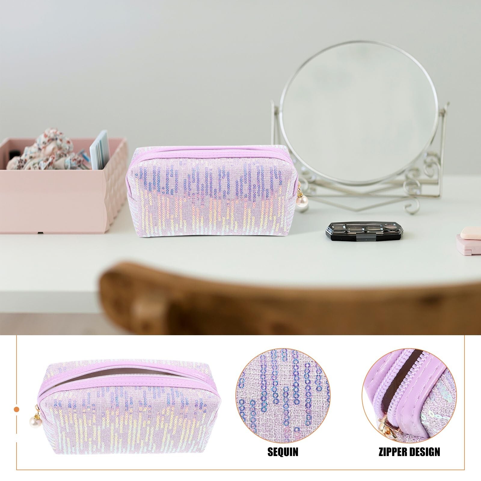 CALLARON Glitter Cosmetic Bag Makeup Bag Travel Clutch Organizer Bag Zipper Handbag Shimmery Sequin Portable Purse Wallet Evening Bag for Women 8.2 x 3.9 inch Product Details Product Dimensions: 8.27 x 8.27 x 8.27 inches Item Weight: 2.08 ounces Department: womens Manufacturer: CALLARON Country of Origin: China Item model number: SA19AAB3DW25D1V10Z Zipper Sequin Bag: Reinforced seams prevent the bag splitting easily, wear resistance and practical for the long time use Travel Cosmetic Bag: The sequin evening bag can be use as the cosmetic organizer bag, wallet, purse, for women and use in various occasions Glitter Pencil Case: The portable organizer bag size about 21.00X10.00X6.50cm/8.25X3.93X2.55inch. Cosmetics bag is for travel or business use, very practical and convenient Fashion Glitter Cosmetic Bag: The makeup bag is designed with fashion and individual, making it more beautiful and elegant Decorative Glitter Purse: Sequin decoration makes this makeup bag more fashionable and versatile, great for any occasion use DescriptionThe shiny sequin cluth bag decoration on the makeup bag adds a touch of fashion and style to it. This makeup bag is a great way to showcase your feminine charm and style. The beautiful color is eye-catching and elegant, making it a accessory for any outfit.Features-Color:Purple; Glitter Travel Bag-Material:Cloth; Glitter Makeup Bag- Size:21.00X10.00X6.50cm/8.25X3.93X2.55inch; Shimmery Sequin Cosmetic Bag Package Including1 x Glitter Cosmetic Bag
