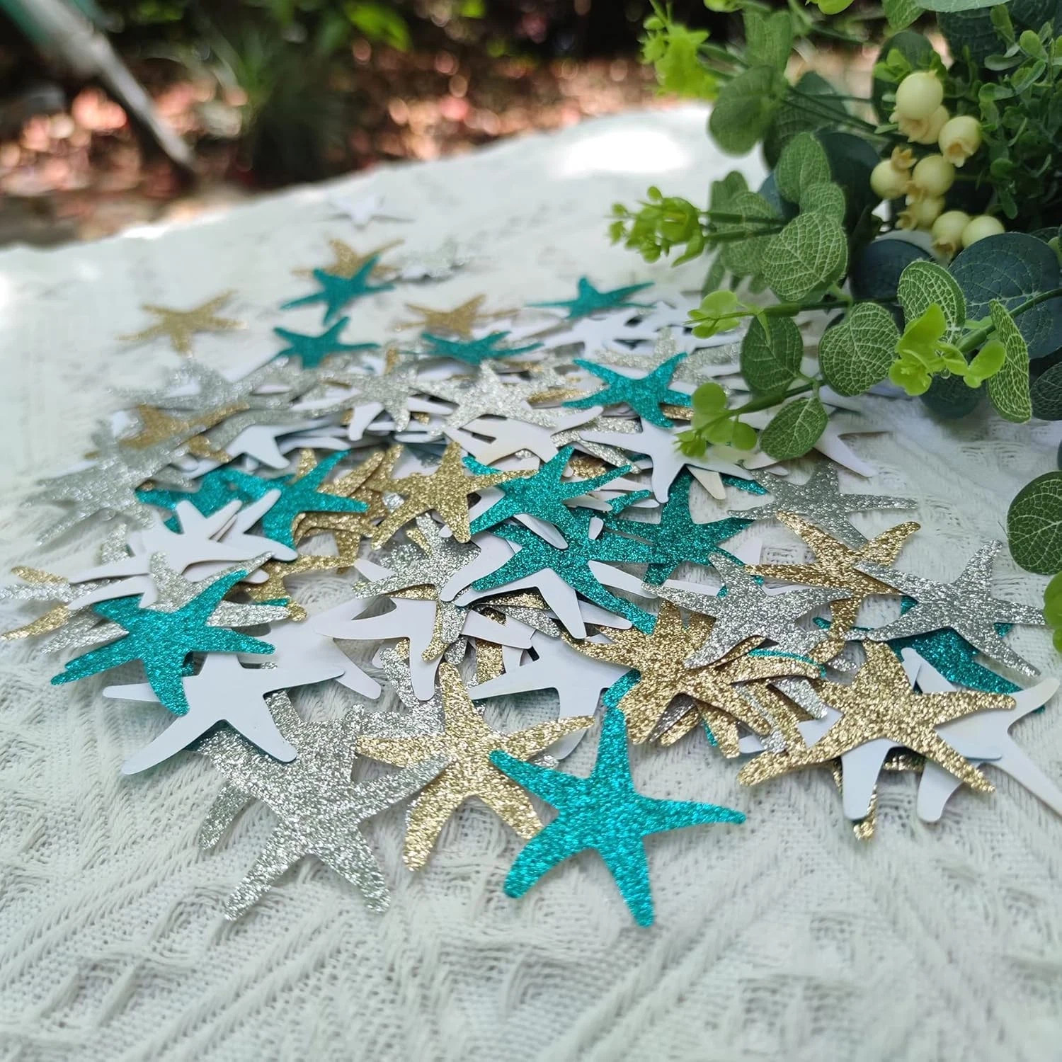 100% Money Back Guarantee if you are not satisfied with your purchase! ___________________ Description: Good decorations for wedding, craft project, holidays, home, etc. Satfish confetti can be used as an embellishment for your craft projects, card making, including scrapbooking and tags Size:1 2/5 inch wide Quanity:150 count, Starfish made from 180 gsm glitter Paper(single side glitter, back is white). ________________________ 100% Money Back Guarantee: We offer 30 Day Money Back Guarantee from the day you purchased if you’re not satisfied with your product. If you have any questions about our products, please contact us as soon as possible. Customer satisfaction is our absolute priority. Shipping: We are always working hard to ensure your package arrives as soon as possible. Please understand that some factors like weather, high postal traffic, and the performance of shipping companies are outside of our control. We offer free shipping to the lower 48 states and ship within 3 business days of payment, usually sooner. We do not accept P.O. Boxes. Please provide a physical address. You will be notified via eBay messages as soon as your items ship. Delivery: We will ship out the item in 2-3 working day after receiving the payment. Usually the delivery takes 2-5 business days. If you don't receive the items after 10 days, please feel free to contact us. You will get a replacement or a full refund. Please DO NOT open a return request or leave negative feedback without asking for help . Returns (Get Free Return Label): We offer a 30-Day Return Policy on defective/wrong items or items which you are not completely satisfied with. You have the option for a full-refund or an exchange of the item. No need to buy eBay return label. Contact us via eBay messages and get free return label. Returned items must be in all of the original packaging and include all of the original accessories or items that came with it. The item and package should be in original condition. Contact Us: Any queries or issues incurred, please feel free to contact us via eBay message, we will get back to you within 24 hours. Please DO NOT open a return request or leave negative feedback without asking for help. Feedback: Your feedback is very important to us. After you get your package and you are satisfied with our service, please leave us positive feedback. We are highly appreciated for your POSITIVE feedback and 5 stars. Enjoy shopping.
