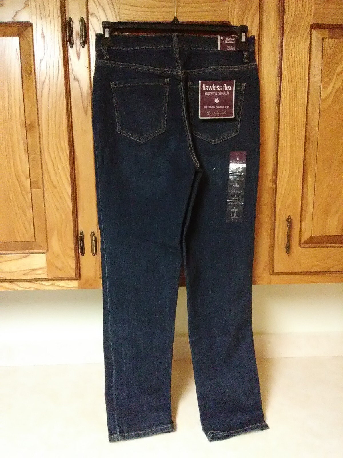 Gloria Vanderbilt Amanda Tapered Flawless Flex / supreme Stretch Jeans sz 8 average tapered leg / classic rise / swan series approximately 14.5 across waist - lying flat -- see photos approximately 30" or 30.5" from crotch seam to hem - see photos all other measurements are shown in photos - thigh measurement, leg opening measurement and rise measurement see photo of fabric content - shown Colors in photos may appear slightly different because of photography lighting and phone/computer screens, etc