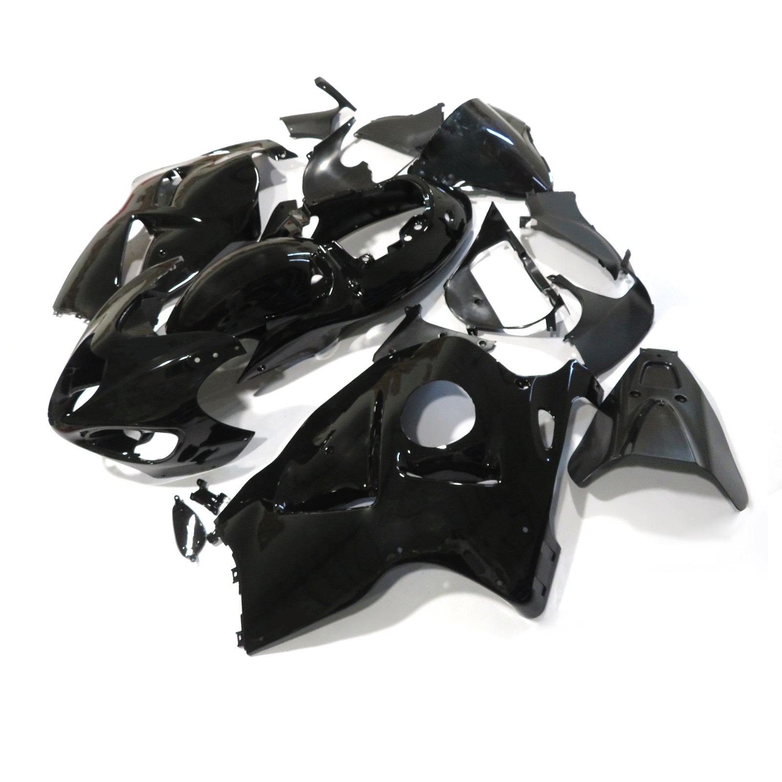 Fitment: For Suzuki GSXR1300 1997-2007 Specification: Condition:100% Brand New, Aftermarket Fairing, Non OEM Material: Made of High quality and durable ABS plastic , good elasticity and heat tolerance. Heat-shield technology adopted. Color: Glossy Black (as pictures show) Sureface Finish: UV Painted , high quality paint job with 3 layers of clearcoat. Molding: ABS Injection Molded Pre-Drilled holes for quick installation The fairing bolts and installation instruction are not included Professional installation is highly recommended. Painted Technology: Advanced UV Light Solidfication Technique for painting ; Compare with the ordinary painting , it is much higher in color saturation and lustrousness. After UV Process , it becomes much stronger in abrasive resistance and chemical resistance. Package Included: 1x Bodywork Fairing Kit (19 Pieces) 1x Heat Shield 1x Windscreen Inner Package: Each small part is packed individually with pearl cotton. Outer Package: Each set of fairing is packed in 7-layer extra strong carton.