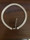 This is a vintage QVC necklace by Godfrey Carter, crafted from 925 silver in a choker style with a mesh omega chain. Measurements are shown in pictures.