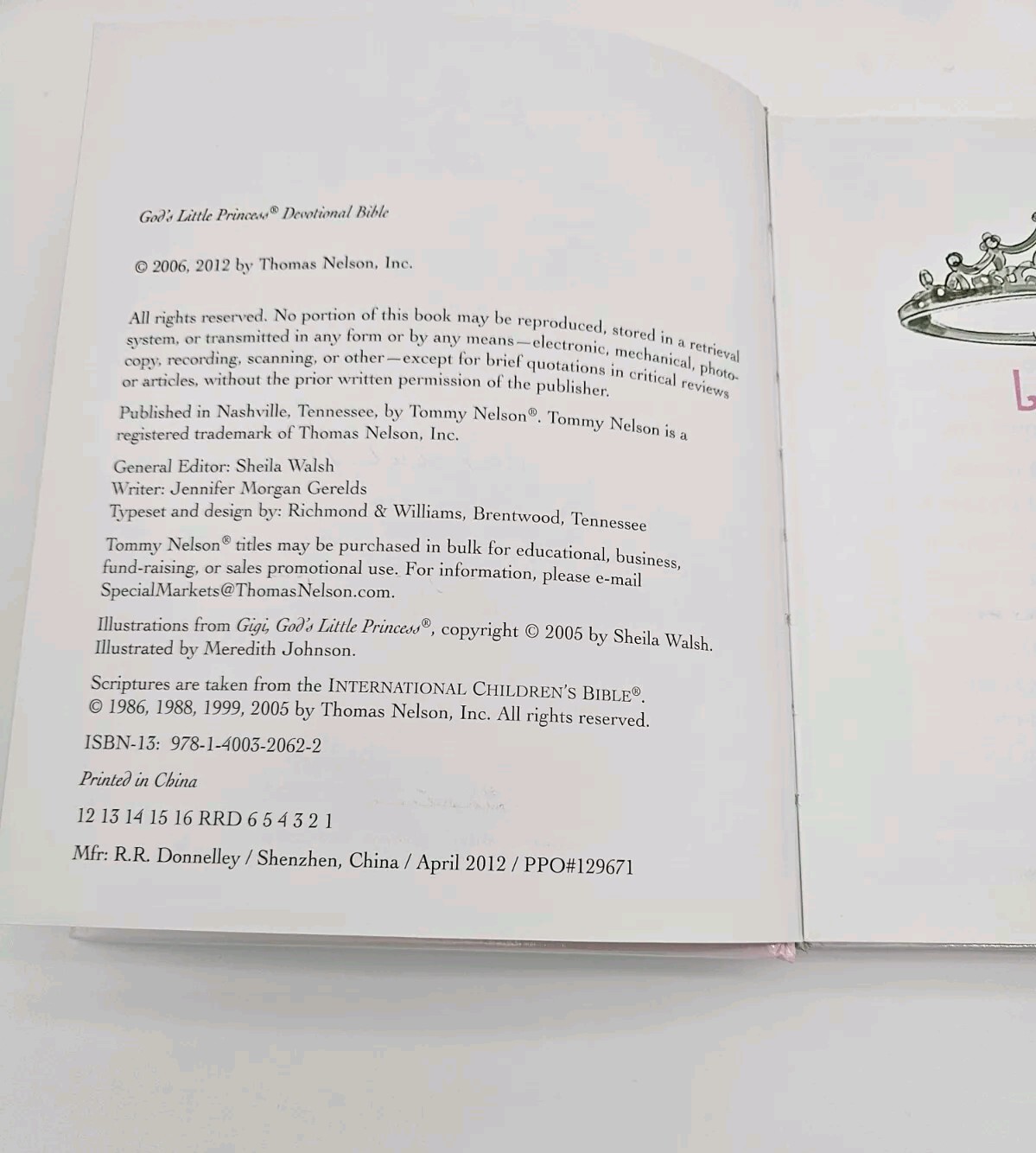 Gods Little Princess Devotional Bible Hardcover by Sheila Walsh 2012 Edition