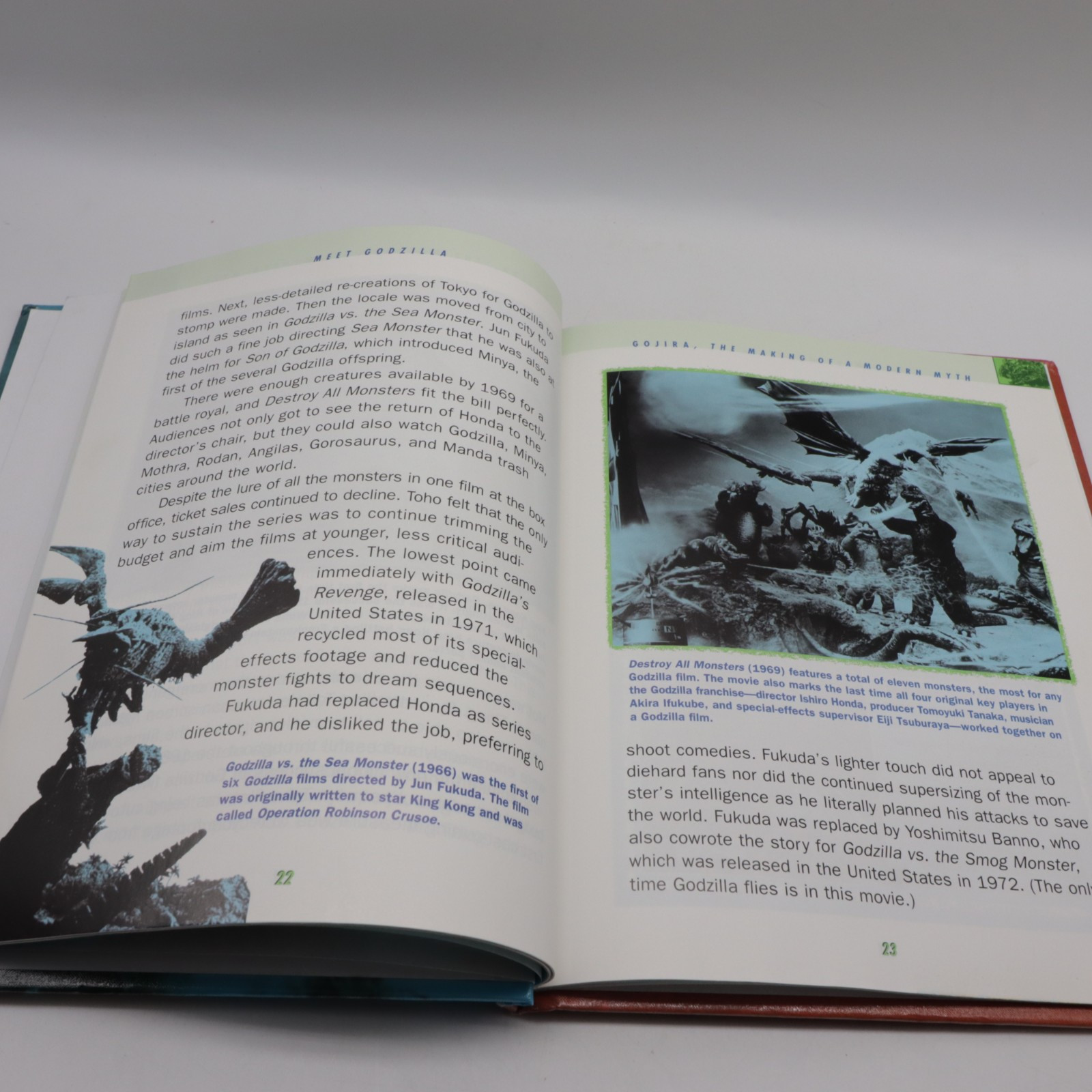 The book "Meet Godzilla" is part of the Famous Movie Monsters series by Robert Greenberger, published by Rosen Publishing Group in 2005. This picture book provides information about Godzilla in a juvenile nonfiction genre, focusing on the topic of performing arts and film. The book is a library binding format, with illustrations included, and has 48 pages with a size of 9 inches in length and 7.5 inches in width. It weighs 9.6 ounces and is written in English.