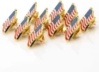 Gold American Flag Pins - Set of 10 Lapel Pins for National Celebrations ‹ › ‹ › ‹ › ‹ › ‹ › ‹ › ‹ › ‹ › ‹ › ‹ › ‹ › Gold American Flag Pins - Set of 10 Lapel Pins - Each pin is 1 inch wide, 4/5 inches in height, perfect for any occasion. - Made in the USA with gold color toned metal, exquisite and durable. - Machine-cut metal into flag shape to ensure consistent size and shape. - Ideal for Memorial Day Party, 4th of July, Veteran celebrations. Features: Set of 10 lapel pins, each with its own individual poly bag. Lifetime limited warranty, 100% satisfaction guarantee. US design patent pending on this flag pin. Benefits: High-quality gold-toned metal construction. Perfect for sharing with family, friends, and colleagues. Suitable for various national celebrations and events. Unique design and craftsmanship. Compact size for easy wearing and display. Why choose our Gold American Flag Pins? Elevate your attire and show your patriotism with our Gold American Flag Pins. Made with precision and quality in mind, these lapel pins are ideal for national celebrations and special occasions. Share them with your loved ones or keep them as a symbol of pride. Don't miss out on owning a piece of premium craftsmanship - order your set of 10 Gold American Flag Pins today! Shipping Free & Fast Shipping - We offer free shipping to most of the USA with a normal delivery time of 3-7 days. However, due to the current situation, additional delivery time (up to 3 weeks) may be required for some items. Alternative Carriers - We may use alternative carriers (e.g. USPS, FedEx, UPS, etc.) to ensure your package arrives safely and on time. Due to the use of multiple carriers, we are unable to provide a tracking number automatically. Handling Time - Orders are processed and shipped within 1-2 business days of receiving cleared payment. Shipping Restrictions - Shipping to Alaska, Hawaii, Puerto Rico, Guam, and other US territories may incur shipping charges or delivery restrictions. Please contact us before ordering, or your order can be refunded/cancelled. State Restrictions - There may be restrictions based on your state of purchase. For example, certain items may not be shipped to California due to state regulations. Contact for Tracking Updates - If you require tracking updates or have any concerns about the delivery of your order, please feel free to contact us, and we will be happy to assist you. Return 30-Day Hassle-Free Returns - We want you to be completely satisfied with your purchase. If you are not, you can return the item within 30 days of receiving it for a full refund or exchange. Easy Return Process - To start a return, simply contact us and we will provide you with a prepaid return shipping label and detailed instructions. Restocking Fee - There are no restocking fees for returns. However, the buyer is responsible for return shipping costs if the return is not due to a seller's error. Refund Processing Time - Refunds will be processed within 5 business days of receiving the returned item in its original condition. Payment We accept all major credit cards, PayPal, and Apple Pay for your convenience. Your payment information is secure and encrypted to ensure a safe and seamless transaction. Please complete your payment within 3 days of purchase to avoid any delays in shipping. Feedback Your feedback is extremely important to us. We strive to provide the best products and customer service possible. If you are satisfied with your purchase, please take a moment to leave us a positive review. If you have any concerns or issues with your order, please contact us before leaving negative feedback. We are committed to resolving any problems and ensuring your satisfaction. Contact Us If you have any questions or concerns, please feel free to reach out to our customer support team. You can contact us through the eBay messaging system. We are available Monday to Friday, 9:00 am to 5:00 pm EST, and we will do our best to respond to your inquiry within 24 hours. Thank you for supporting our small family business!