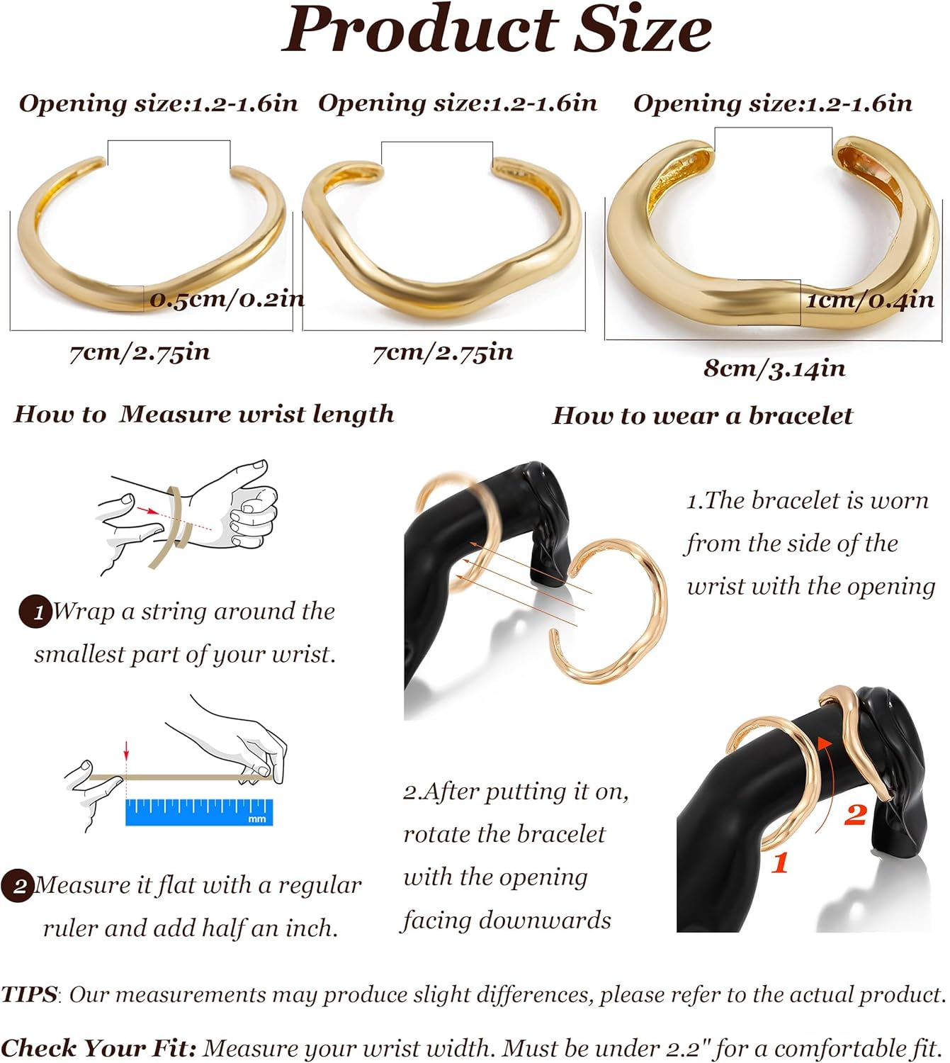 Store New Arrivals Add to Favorite View Feedback Contact Fast deliveries to the customer's home Quality customer service John Make the customers happy! Gold Bangles Chunky Bracelets for Women Big Thick Bangles Large Cuff Bracelet Stack Non Tarnish for Women Trendy Jewelry Birthday Gifts Description Great Gift Ideal For: Anniversary&Birthday&Date&Graduation&Romantic Surprises Valentine’s Day ThanksgivingDay Christmas Mother's Day New Year Department womens Color A1:gold bangles Product Dimensions 5 x 5 x 5 inches; 0.48 ounces ABOUT US We offer the best prices around on high quality products. Our E-store includes media such as books, movies, music and games while offering electronics, toys, sporting apparel, clothing, tools, general home, garden items and more. SHIPPING We are always working hard to ensure your package arrives as soon as possible. Please understand that some factors like weather, high postal traffic, and the performance of shipping companies are outside of our control. We offer free shipping to the lower 48 states and ship within 2 business days of payment, usually sooner. We do not accept P.O. Boxes. Please provide a physical address. For shipping outside of the continental USA, we only use eBay's Global Shipping Program. The item is shipped to KY and then sent to the rest of the world. International customers are responsible for all duties and taxes. Continue to 'check out' to calculate costs for shipping the item to your country. Messages regarding eBay's Global Shipping Program MUST be directed at eBay EXCLUSIVELY. RETURNS We offer a 30-Day Return Policy on items in which you are not completely satisfied with. You have the option of a full-refund or an exchange of the item. No returns are available on items shipped outside of the USA PAYMENT We accept PayPal. CONTACT US This page content is yet to come Please ad us to your favorite seller and visit again later Thank You CUSTOMER SATISFACTION We try our very best to make sure every customer is completely satisfied. If there's a problem, message us! We're happy to help. WE ACCEPT