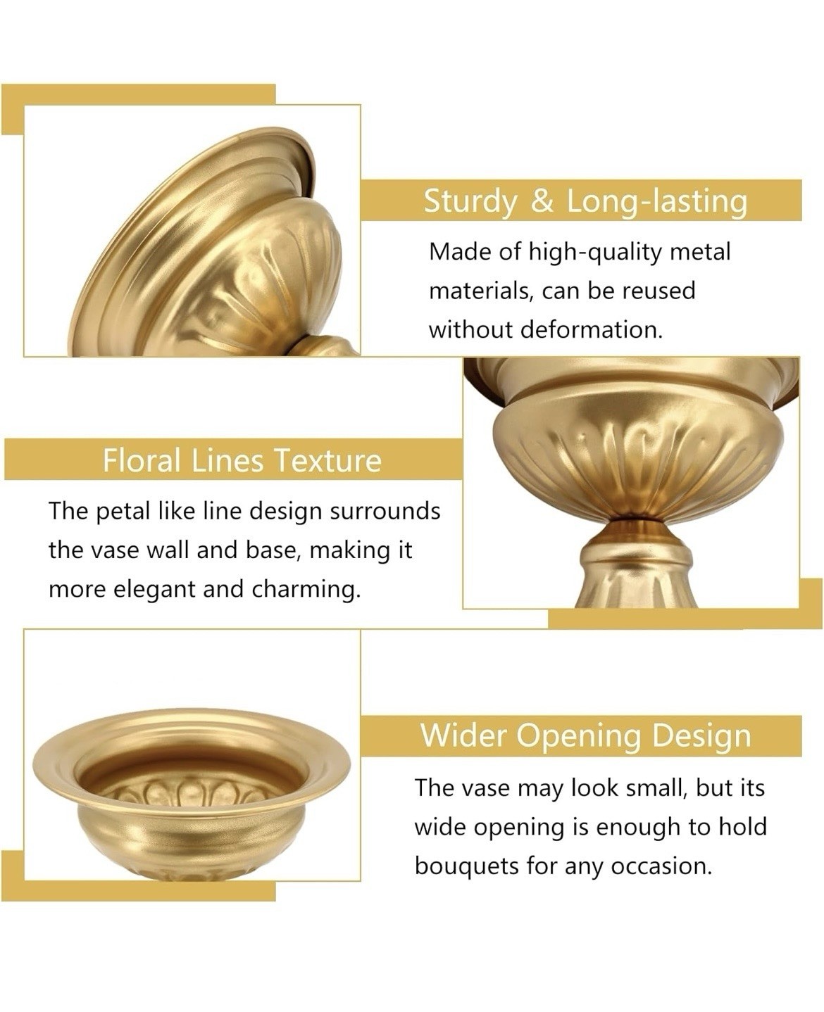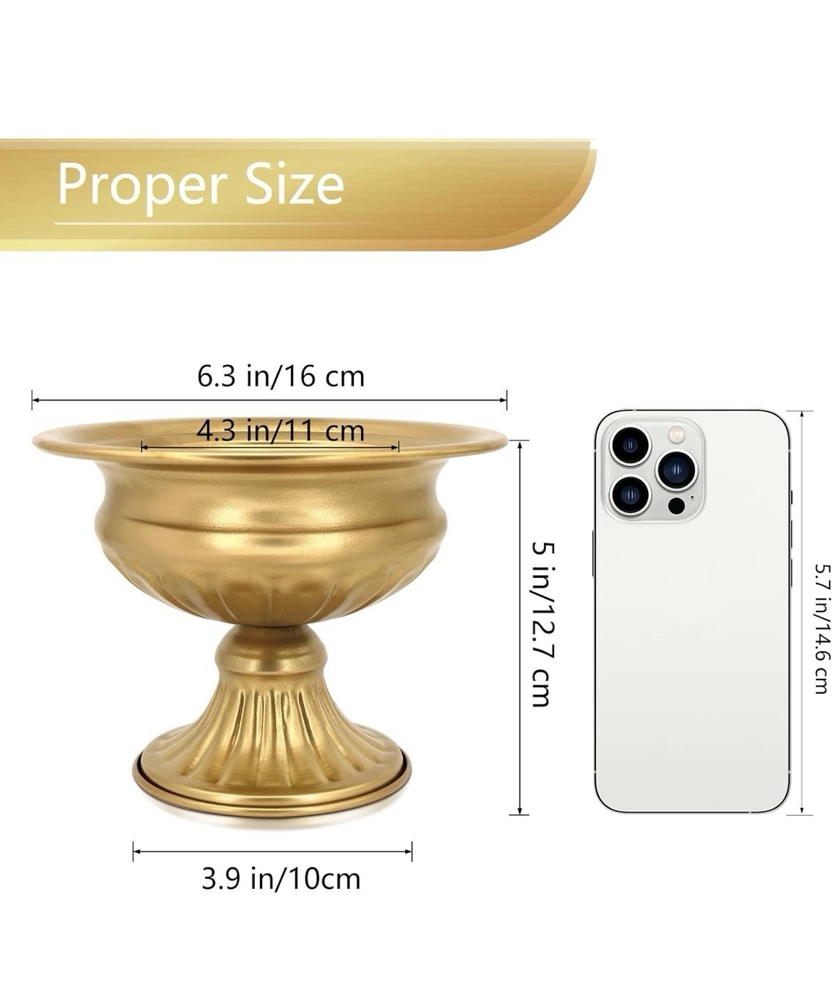 The Gold Compote Vases for Centerpieces are elegant and stylish flower vases perfect for a variety of occasions such as weddings, events, birthdays, anniversaries, and Christmas. Each vase stands at 6.5 inches tall and comes in a set of two, making them ideal for use as table centerpieces in the dining room, living room, or bedroom. With a classic European style and a matte finish, these vases add a touch of sophistication to any home décor. The gold color and floral pattern make them a timeless and chic addition to any space.