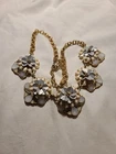 Add a touch of elegance to your outfit with this stunning 12-inch chooker necklace. The necklace features a beautiful flower pendant with faux moonstone teardrop shapes in a cluster setting. The matte gold and grey color combination gives it a timeless appeal suitable for any occasion. The necklace is handmade with high-quality rhinestone material and an oval link chain type. It comes with a lobster closure and is perfect for those who love statement necklaces. This unique piece is a must-have in any jewelry collection.