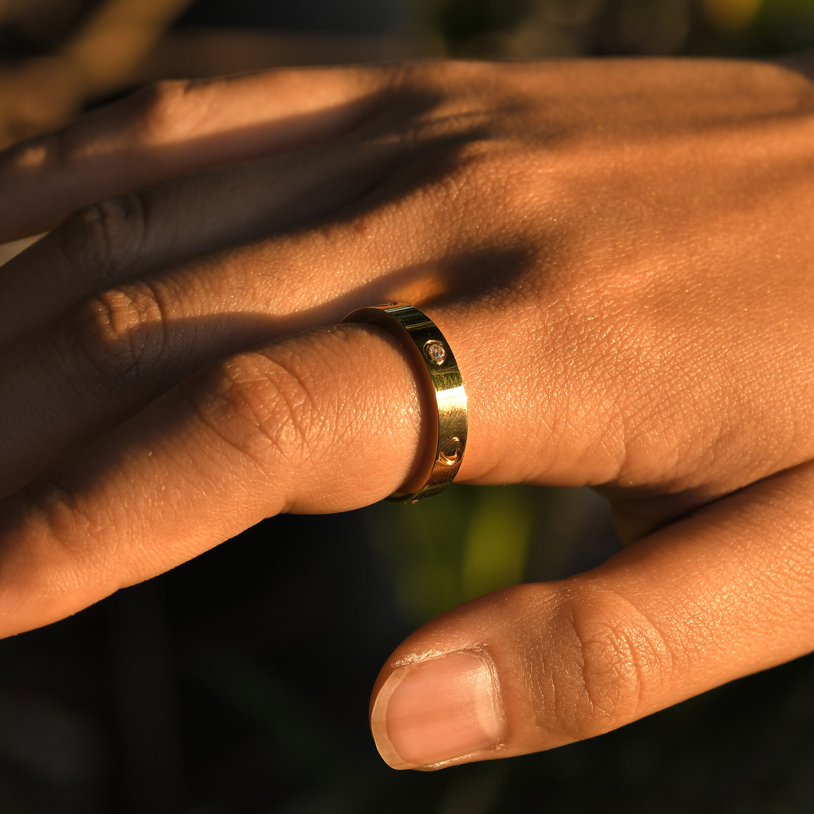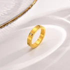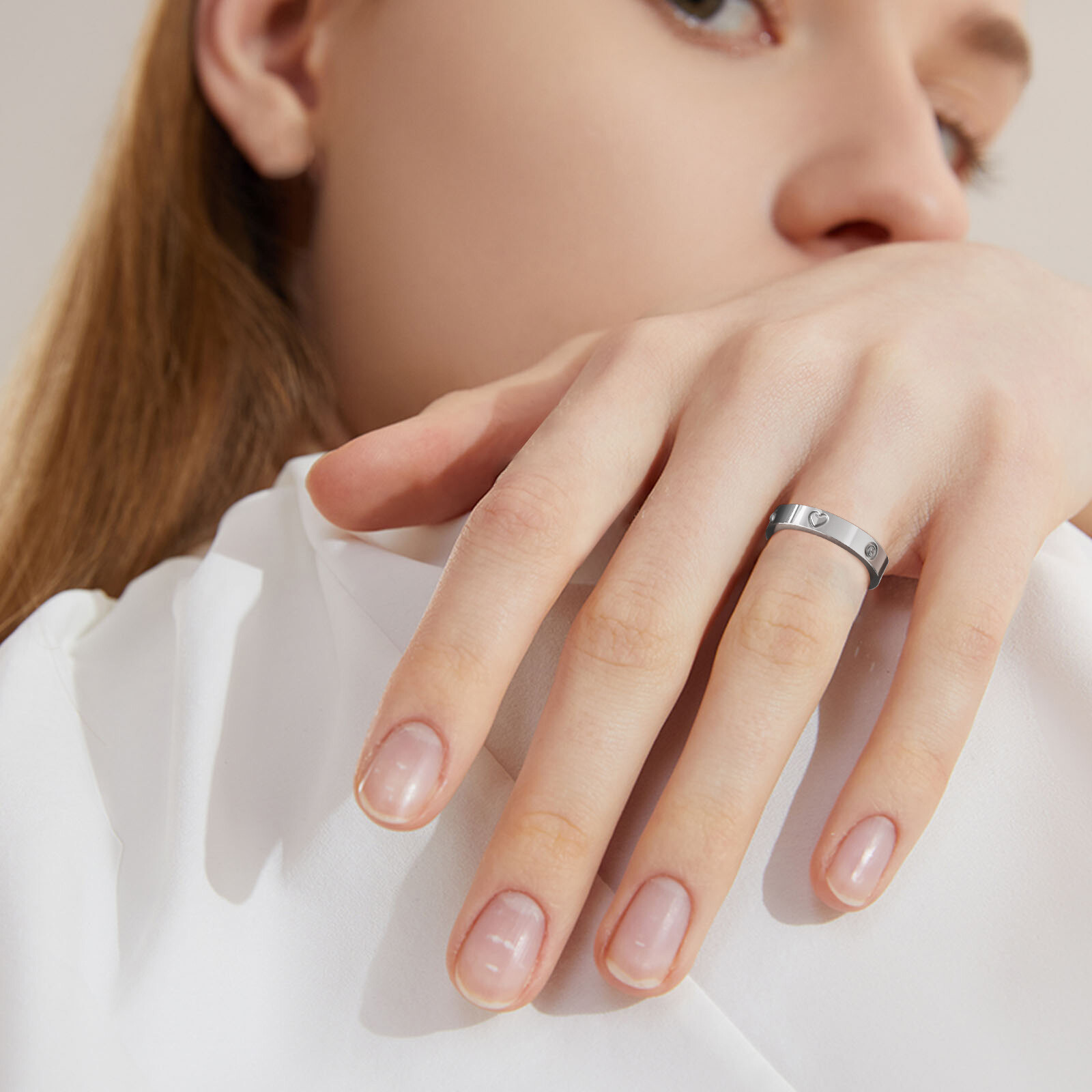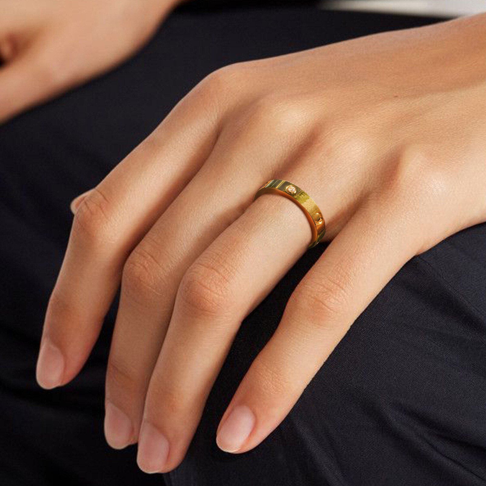 Gold Heart CZ Wedding Band for Women - Stainless Steel Ring