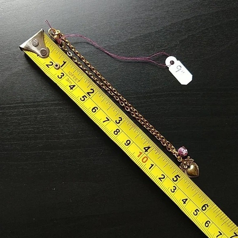 Anklet new old stock, never worn no markings gold tone heart and flower charm super cute glass bead, purple around the edges, a white flower with red dot center on each side 9" gold chain lobster claw clasp questions? please ask!