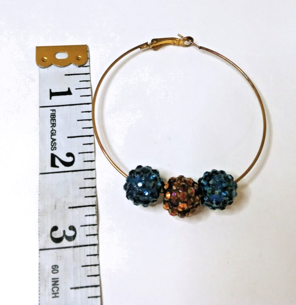 GOLD TONE HOOP EARRINGS IRIDESCENT CLUSTER BEADS FASHION JEWELRY SALE Thank You