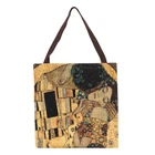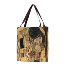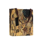 Signare Tapestry Reusable Grocery Eco-Friendly Shopping Tote Bag in Gustav Klimt Gold Kiss Design An eco-friendly alternative to plastic shopping bags. Made from durable tapestry and is great for everyday use at work or grocery shopping. Fantastic amount of storage for shopping and bigger essential items. Flat and easy to fold for storage in handbag. Contains an inner slip pocket. Product dimensions approx. W13.8 x H 13.5 x D3.2 inches weight 0.5 lbs, handle drop approx. 8.5 inches