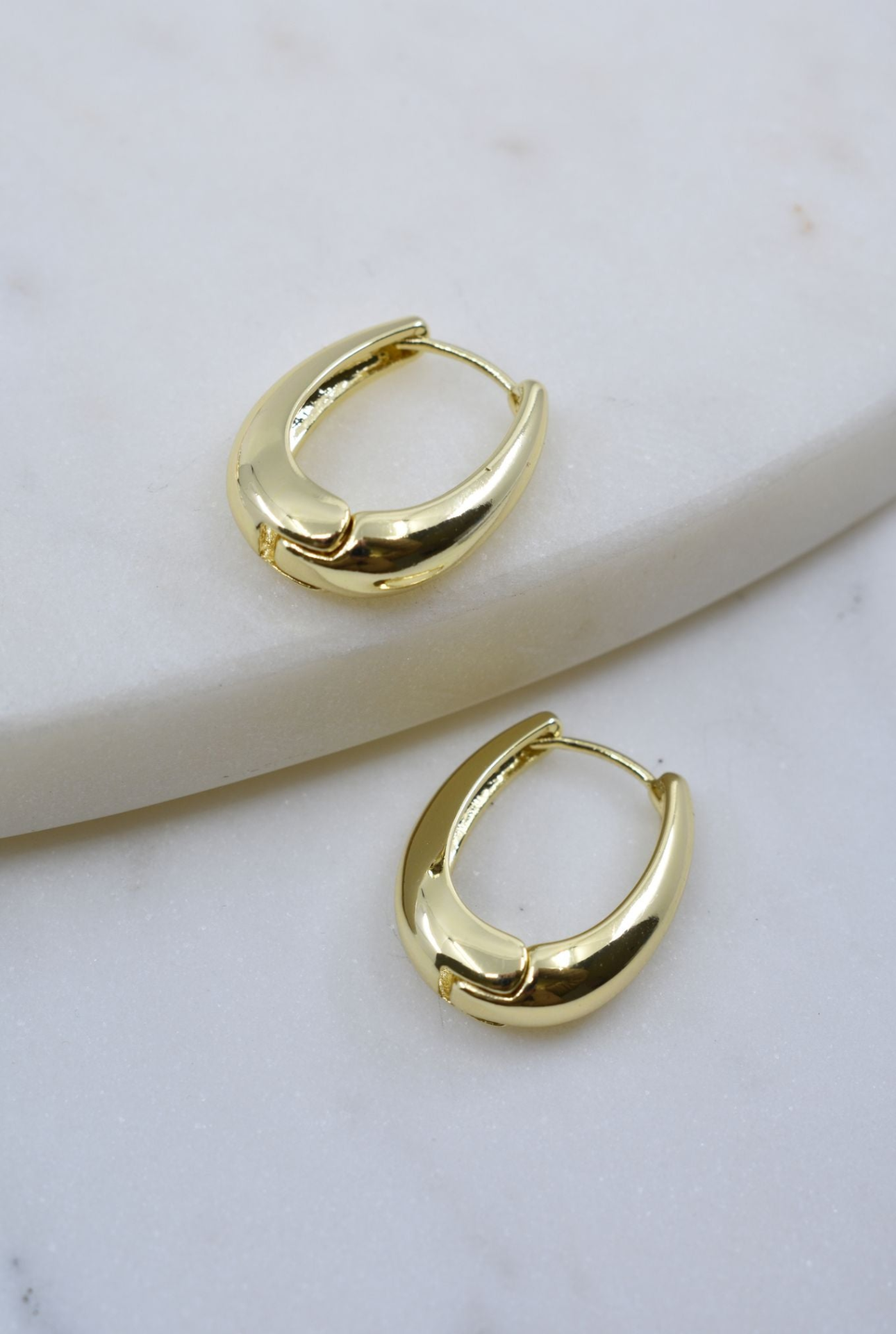 A Blonde and Her Bag Gold Oval Hoop Earrings An elegant oval hoop earring perfect for any occasion. Size: 1/2" in long ,1/4" wide Hypoallergenic This product is made of metal alloy (silver and copper and other metal alloy) with high quality plating (It will last for a long time without tarnish). Handmade with love in Sausalito, California