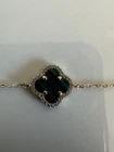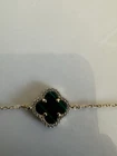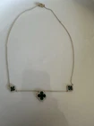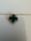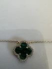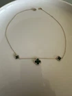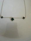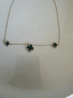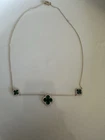 Necklace Gold 18k Plated Clover Green Stone Three Flower