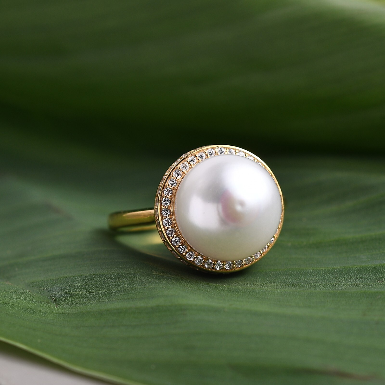 This beautiful ring from Manomay is the perfect symbol of love and commitment. With a stunning round pearl as the main stone, the ring is set in 925 sterling silver and plated with gold for a luxurious finish. The ring is perfect for women who appreciate the beauty of bohemian and gothic styles. The ring is a full finger style and features a solitaire setting. The secondary stone is cubic zirconia, adding to the overall brilliance of the ring. This ring is ideal as a wedding gift or as a statement piece for any special occasion. The solitaire engagement ring option showcases a brilliant zircon gemstone, making it a perfect choice for a romantic proposal or a cherished symbol of love. Designed to be both versatile and eye-catching, these pearl rings effortlessly complement any outfit, from casual to formal. Indulge in the luxurious allure of these meticulously crafted rings and let your fingers sparkle with grace and sophistication. Embrace the radiance of nature's treasures with our captivating pearl rings.