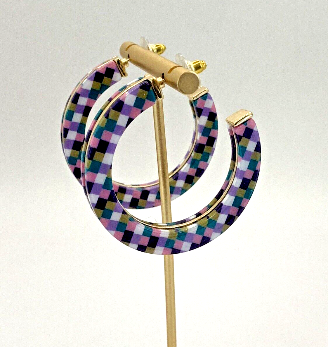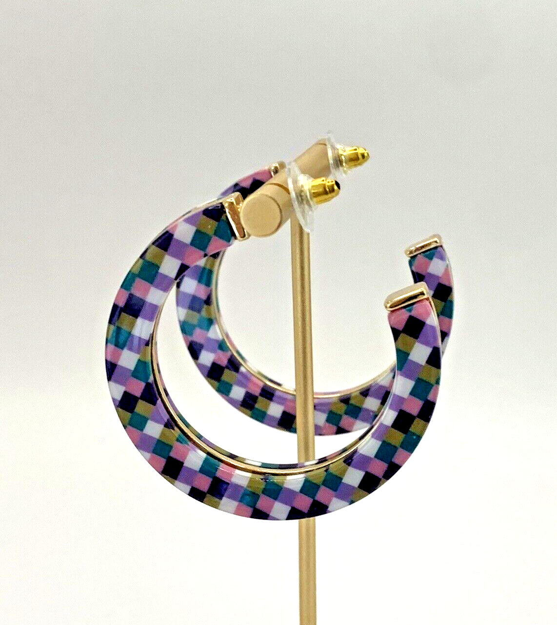 Earrings Hoops Resin Checkerboard Gold Plated Layer Lilac Purple Gift Nickel Lead & cadmium free Also Available in green To keep your jewellery in top condition, keep jewellery dry, be careful with fragrances, apply lotions before jewellery, store correctly and keep out direct sunlight - any further guidance please ask