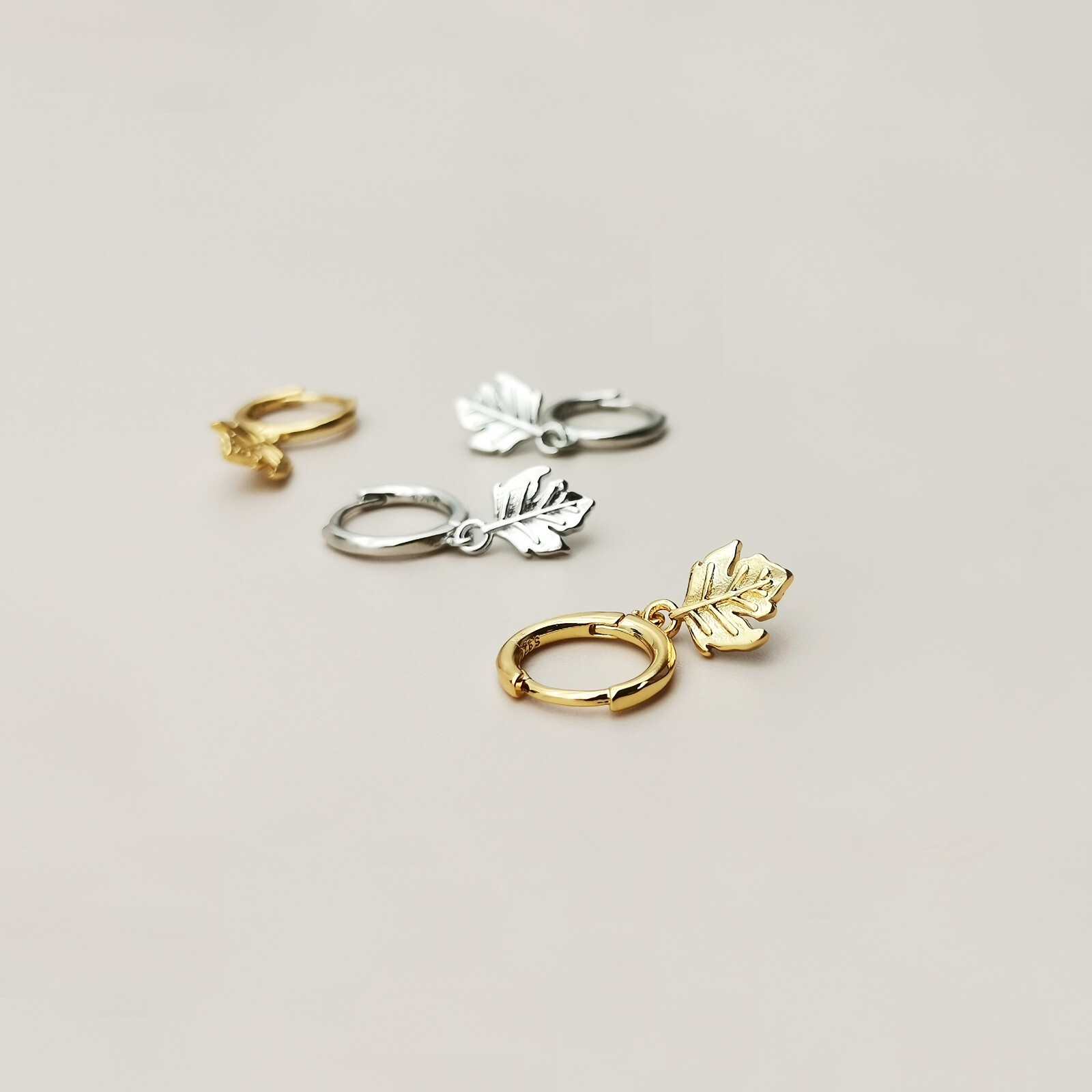 Leaf Huggie Hoop Earrings | Gold or Silver | Jewellery Gift Beautifully crafted leaf dangle design, inspired by nature. Secure huggie hoop closure ensures the earrings stay in place. Lightweight and easy to wear, perfect for all-day comfort. Ideal for casual wear, office attire, or special events. ・Measurements: Leaf 7.5mm * 10.5mm, Hoop Inner Diameter 9mm ・Material: 925 Silver, Gold Plated ・ Package Contains: 1 Pair of Earrings, ready to gift in a luxurious velvet pouch. 🤍 We advise to keep your jewellery in a sealed container when not wearing. This helps protect against humid environments.