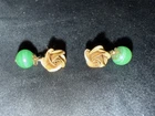 Gold Rose & Green Dangle Earrings. Condition is Pre-owned. Shipped with USPS Ground Advantage.