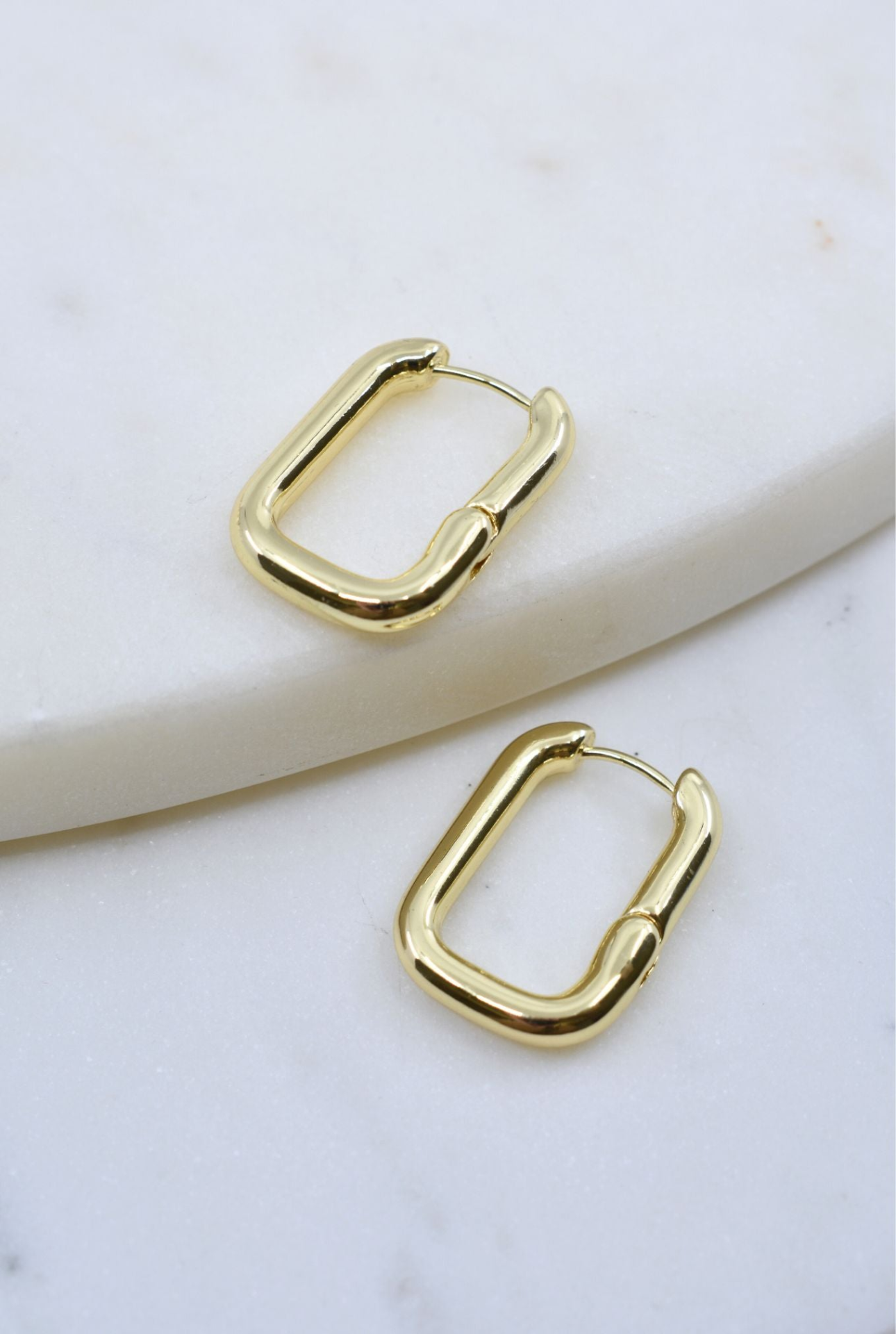 A Blonde and Her Bag Gold Square Chain Link Hoop Earrings A modern take on a classic square gold hoop earring. Size: 1" long, 2mm wide Hypoallergenic This product is made of metal alloy (silver and copper and other metal alloy) with high quality plating (It will last for a long time without tarnish). Handmade with love in Sausalito, California