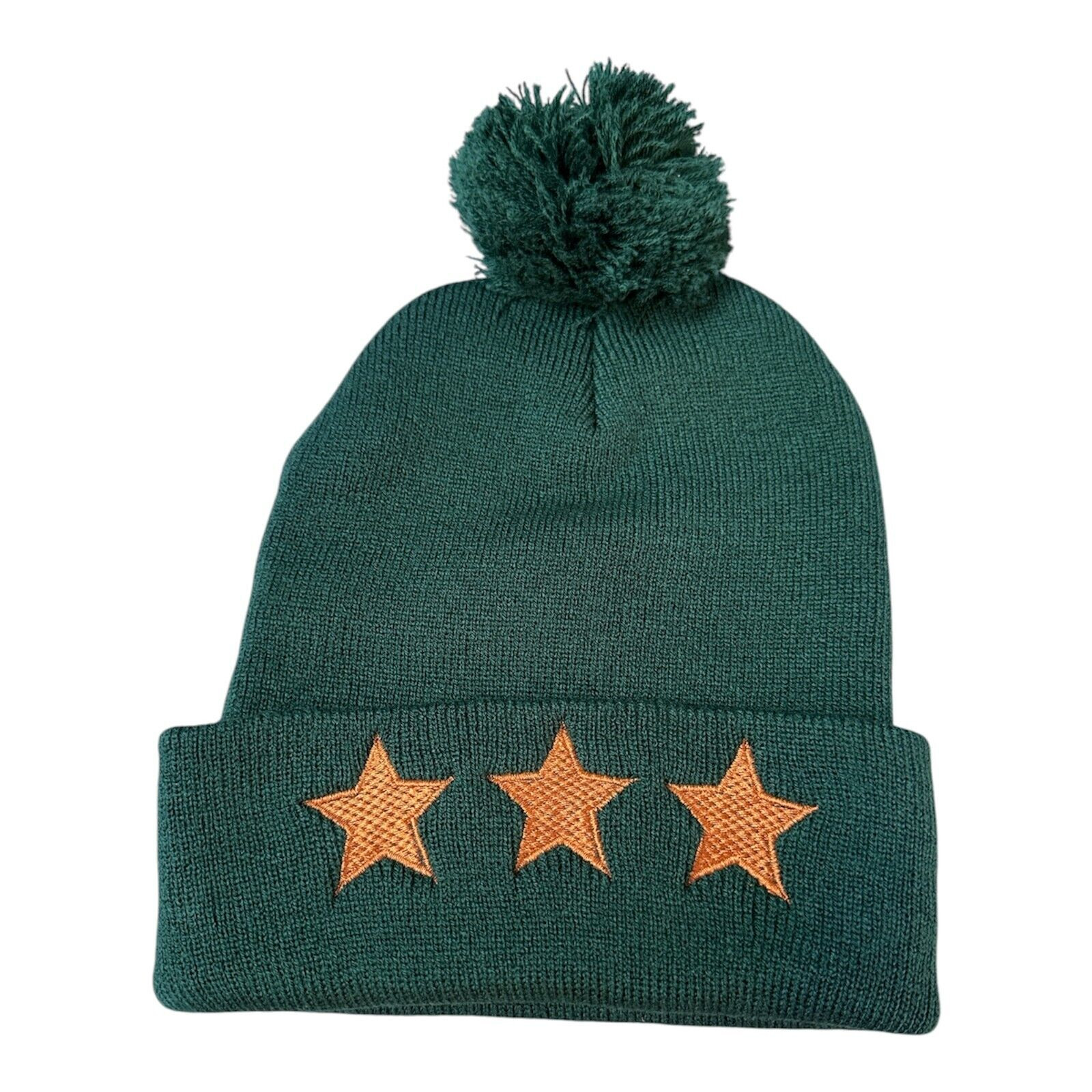 Stay warm and stylish with this trendy hunter green cuff beanie featuring elegant gold star embroidery. Perfect for both men and women, this versatile winter accessory combines fashion with function. Key Features: • Premium hunter green color with gold star accents • Soft and comfortable cuff design • Stylish pom pom detail • Unisex style suitable for all adults • Brand new with tags • One size fits most Measurements: • Width (laid flat): 8.5 inches • Length: 9 inches This beanie is ideal for casual wear, outdoor activities, or daily commuting. The classic design with modern star embellishments makes it a perfect accessory for any winter outfit. The cuff style provides extra warmth around the ears, while the pom pom adds a playful touch to your winter look. Perfect for: • Daily wear • Winter activities • Outdoor sports • Casual outings • Gift giving Care Instructions: Hand wash recommended to maintain embroidery quality.