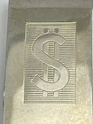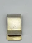 Money clip dollar symbol etched design gold tone polished small 1-7/8" Preowned 1-7/8" long 1" wide 15.07g polished gold tone with an etched rectangle money symbol and horizontal lines good preowned condition light scratches, rubs, mars, etc. All International shipping will be handled through (EBAYS INTERNATIONAL SHIPPING PROGRAM)