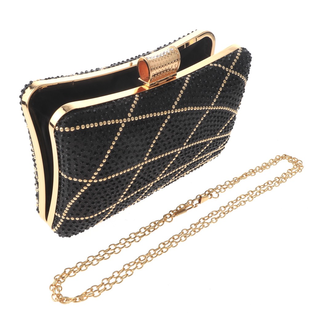 Gold Tone Metal Hardware Frame Rhinestone Clutch Evening Bag / Long Chain Strap / Approximate Size: 7.75"L x 4.75"H x 2.5"W / Color: Gold & Black Condition: Brand New SKU: BZY247-BLK Color: Black Design: All orders will ship from USA via UPS or USPS. We expect all local orders will receive the items within 7 business days or less depend the location. Worry free international shipment delay or custom duty fee.