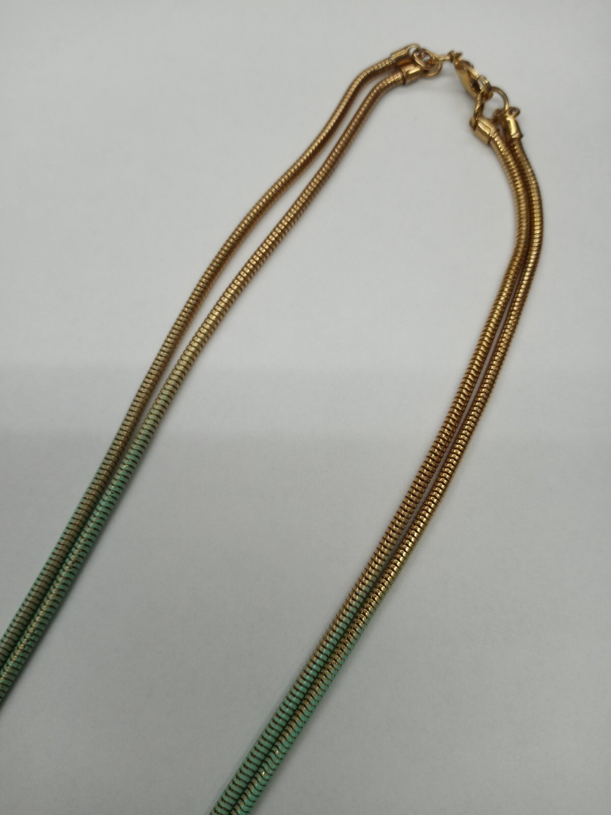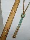Necklace Gold Tone Mint Green Shimmer Chain Hanging Knot 36" with 5" Knot. Gold and mint green change according to the angle of view. Unique and beautiful!