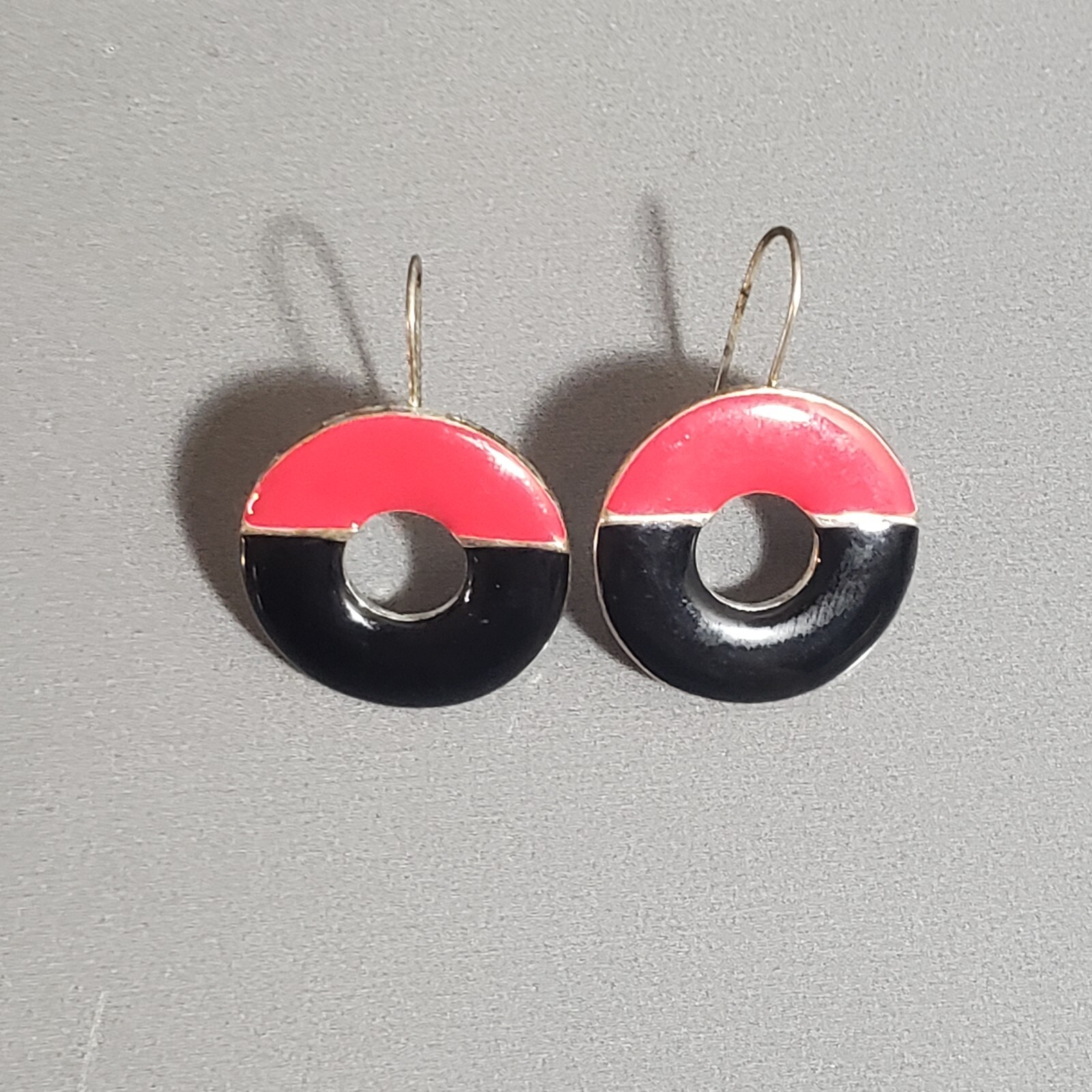 Up for sale is a set of dangle earrings. They are gold tone, red and black in color. They are in good pre owned condition! Please view all posted pictures as they are part of the description. If you have any questions please ask. Please check out my store for more great deals that are listed every day!!