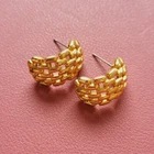 Gold tone earrings large weave pattern studs pre-owned 1.5cm