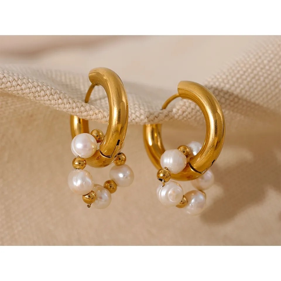 These elegant hoop earrings are a must-have for any jewellery collection. The 18k gold plated on stainless steel adds a touch of luxury and the pearl charm adds a feminine touch. These earrings are perfect for any occasion, from weddings to graduations and everything in between. The clip-on closure ensures a secure fit, while the round shape and dangle/drop style make a bold statement. With a length of 17mm and a diameter of 12mm, these earrings are the ideal size for both day and night wear. Treat yourself or someone special with these stunning earrings, the perfect gift for birthdays, anniversaries, or any special occasion. Material: Stainless steel + 18K gold plated Hoop Inside Diameter: 12mm Hoop Thickness: 5mm Pearl Charm Size: 27mm Weight: 11g Water, Sweat, Heat Resistant (No Discolouring or Tarnishing) No risk of allergy (nickel-free, lead-free) * If you wish to order these earrings multiple times please send me a request via private message * Visit and follow our eBay store for a wide jewelry collection: https://www.ebay.com.au/usr/adinajewelryboutique
