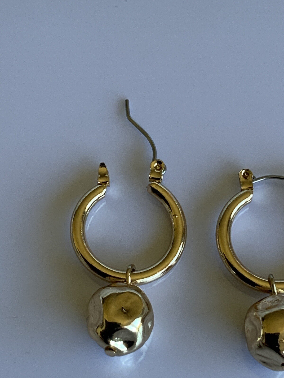 Small Round Hoop Earrings Smooth Hoop. Lever back Pierced Earrings. Size is approx.:- 3 cm drop (from Earring Post) perimeter is approx.:- 1.5 cm in circle. (Just under) width:- approx. 2 mm With a Gold Plated Round dinted Pearl suspended down from the Hoop. It suspends down approx; 1.5 cm from the bottom of the Hoop. These are a Fashion Jewellery item. When your outfit requires a simple Hoop earring, but with a little "Pizzazz". Delicate & Classy size and Beautifully detailed. sku- E-089 Payment & Postage PayPal and Direct Bank Deposit is Accepted. Your Purchase will be posted by Australia Post, Standard Postage. Tracking is available by selecting Registered Post in Options. A Signature will be required upon delivery; if no one is available to sign a card will be left for collection at your Post Office. Otherwise for a quicker Postage Delivery Service, you can select the Express Postage Option at a extra charge. Providing your Postcode falls in the Australia Post Domestic Express Postage area, otherwise a delay of a couple of days may occur. International Buyers~ PayPal is the only form of Payment available. Any Charges eg. Import Duties, Taxes etc are the Buyers Responsibility; Please check your countries custom details for any additional costs before your Purchase. Thank you for Visiting. Please call again, new items are listed regularly, also sign up for my stores newsletter, and pop me down as a favorite store!!