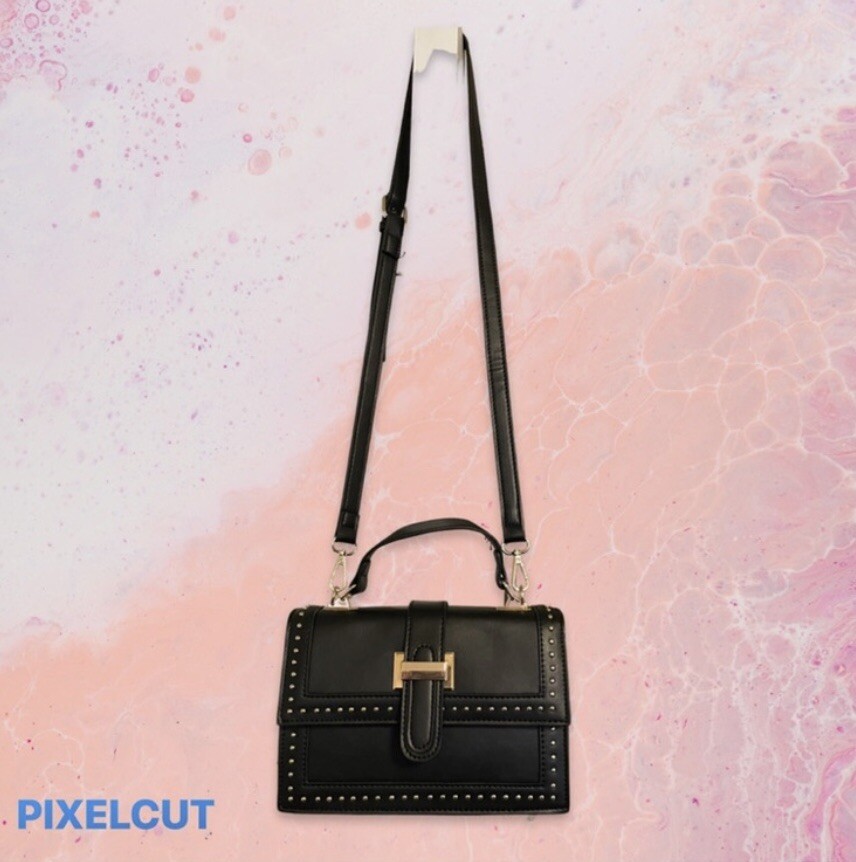 Woman’s handbag- GOLD DETAIL VEGAN LEATHER SQUARE HANDBAG/CROSSBODY PURSE-Black. Condition is "New with tags". Shipped with USPS Priority Mail. GOLD DETAIL VEGAN LEATHER SQUARE HANDBAG/CROSSBODY PURSE - BLACK A glamorous stunning classy unique and trending hot must have bag that features a unique studded faux leather square bag design. Includes a pocket to insert a filter! Comes with a body strap, Magnetic snap closer Size: 6"Tall 9" Long 3" Wide B-Dazzle Boutique HTTPS://www.bdazzleboutique.com Imported