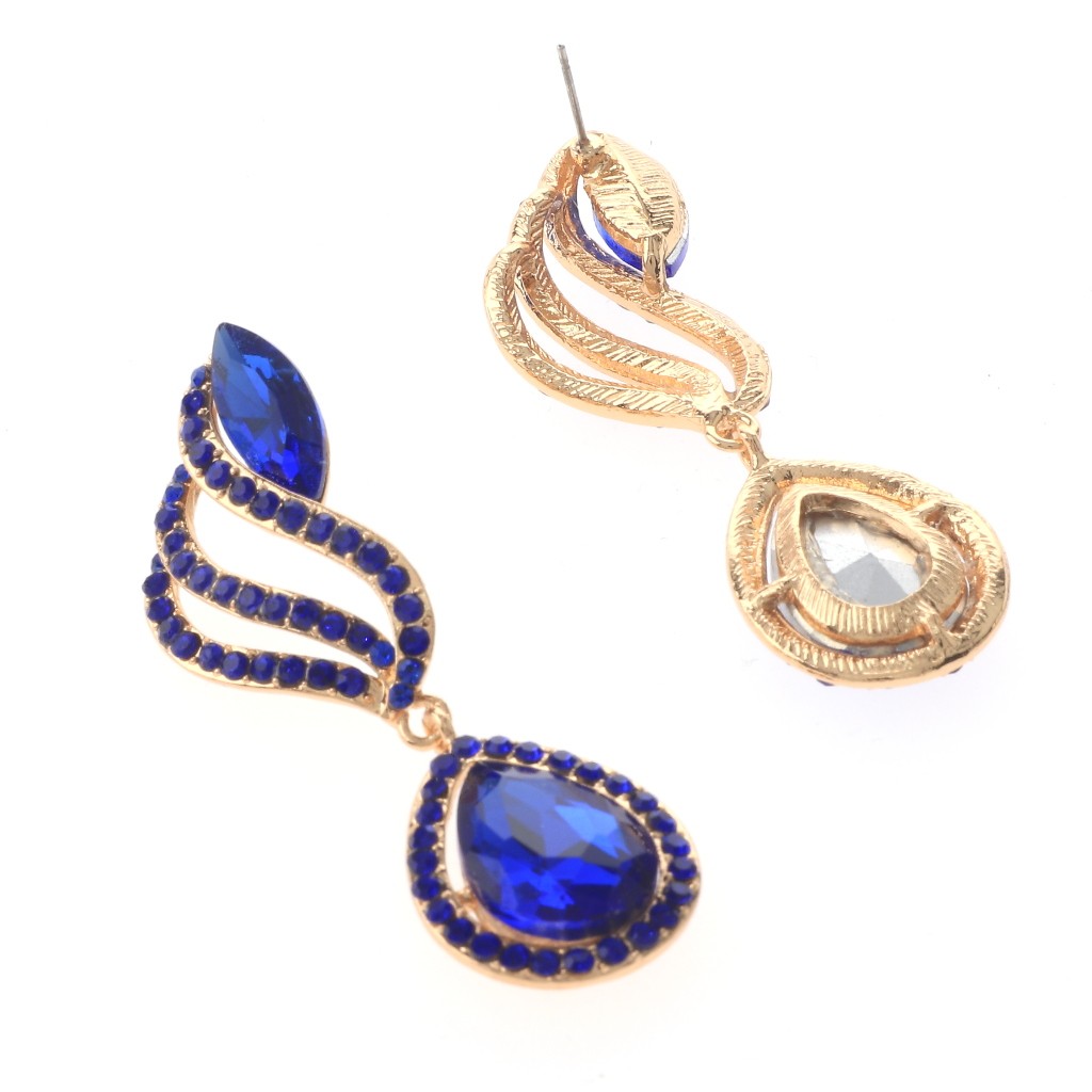 Gold Tone Alloy Metal Crystal Rhinestone Drop Post Earrings / Approximate Size: 2.5" L x 0.75" W / Rhinestone / Metal / Lead & Nickel Compliant / Color: Gold & Sapphire Condition: Brand New SKU: ER2592-SAP Color: Sapphire Design: All orders will ship from USA via UPS or USPS. We expect all local orders will receive the items within 7 business days or less depend the location. Worry free international shipment delay or custom duty fee.
