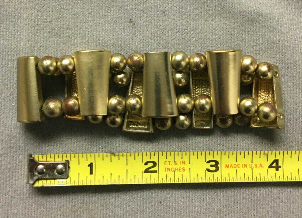 Gold tone Bars and Beads Bracelet, Metal, Stretchy 8" Circumference Unbranded