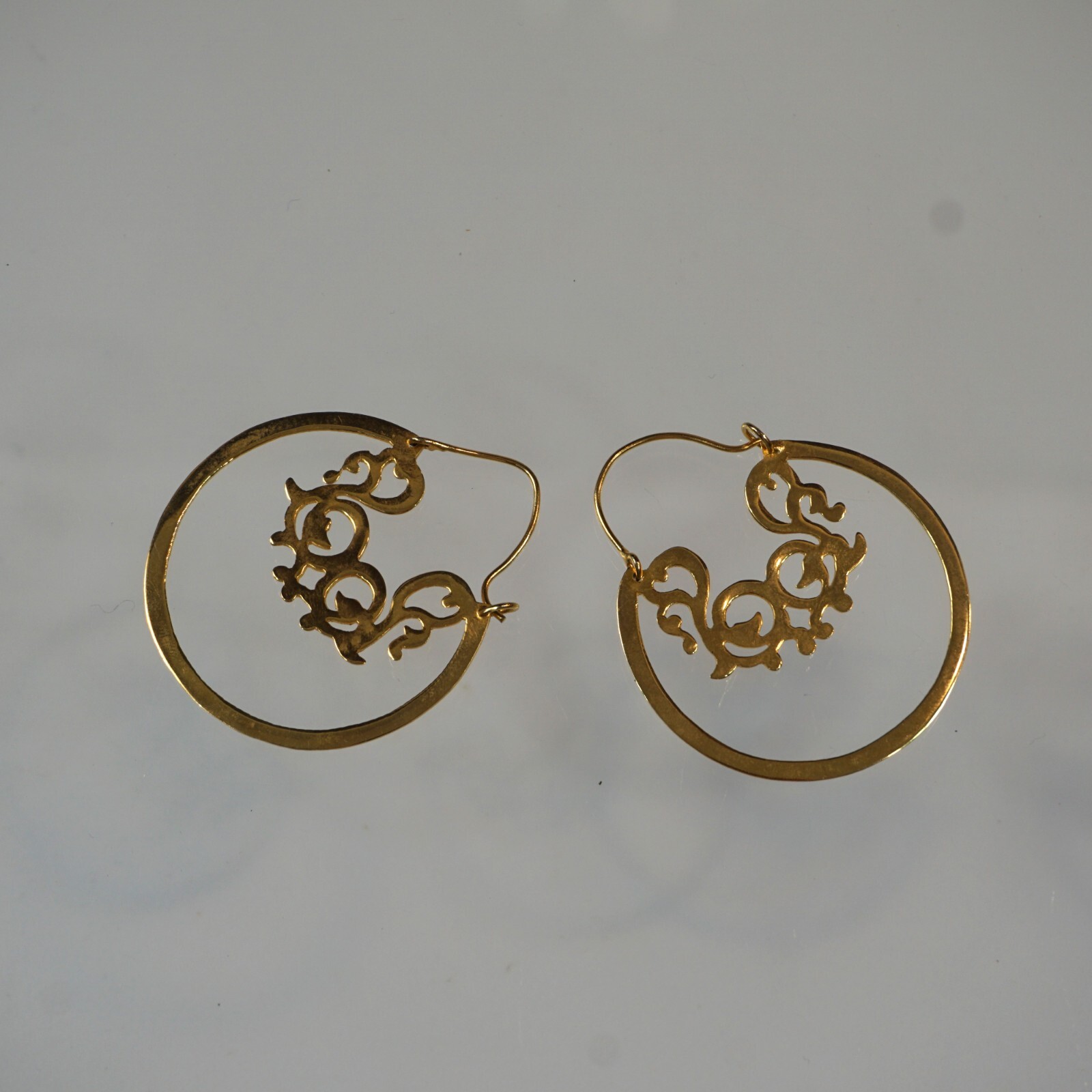 Hoop Earrings Cut Out Disk. Gold Tone . 2" Dimeter Disc / Coin. Drop Dangle . Pre-owned.
