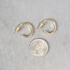 Up for sale is a set of dangle hoop earrings. They are gold tone in color. They are in good pre owned condition! Please view all posted pictures as they are part of the description. If you have any questions please ask. Please check out my store for more great deals that are listed every day!!