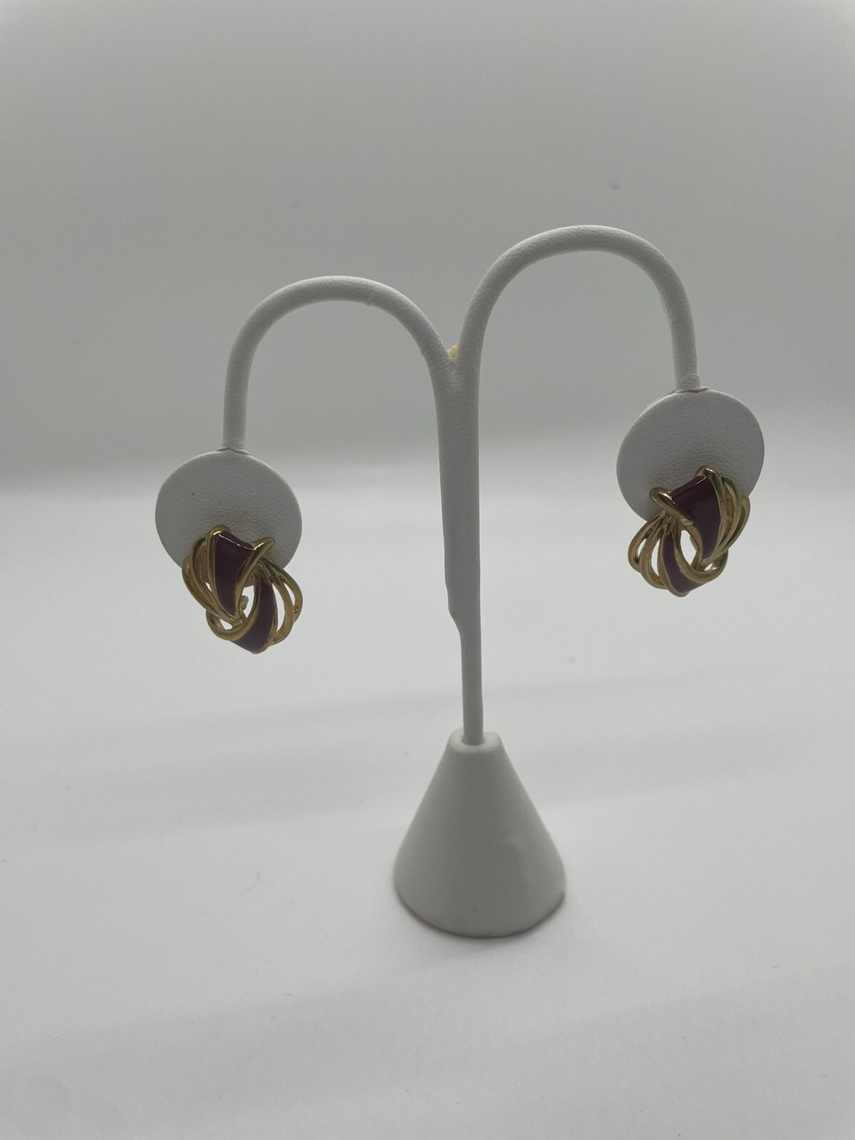 This is a nice pair of Stud Earrings Gold Tone Purple Enamel Wrapped Please view all photos to see approximate measurements and different views. Good pre-owned condition. The colors may vary slightly depending on lighting and/or computer monitor. Please use the zoom tool to take a close look at the piece. Pictures are part of the description. Measurements are shown in the pictures. If you have any questions about the product, please contact MsVix. We are happy to answer any inquiries. Thank you for being the best part of our business.